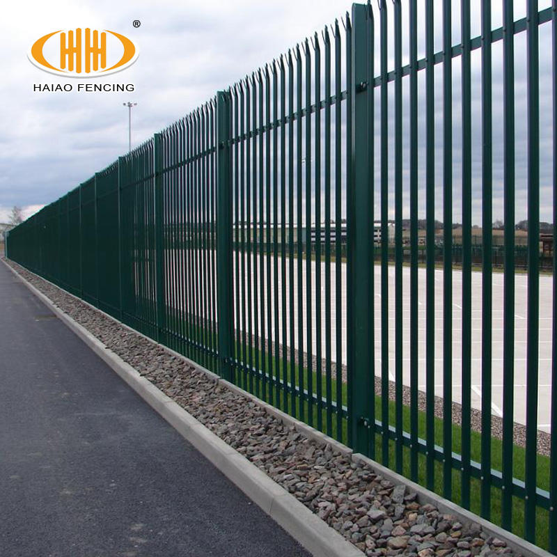 รั้วเหล็กเคลือบสี Haiao แบบยุโรป รั้วเหล็กแบบ Palisade พร้อมแผงเหล็กชุบสังกะสี ขนาด 6x8 ฟุต ป้องกันสนิม ขายส่ง