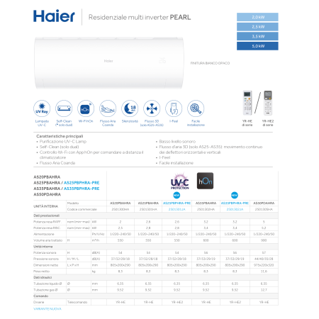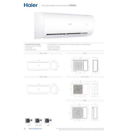 เครื่องปรับอากาศไฮเออร์ เพิร์ล 9000+12000 บีทียู อินเวอร์เตอร์ R32 แบบแยกส่วนคู่ ประหยัดพลังงานระดับ A+ รองรับ Wi-Fi รุ่น 3U55S2SR5FA ใช้พลังงานไฟฟ้า