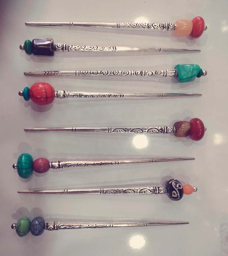 เครื่องประดับผม ไม้เสียบผมโลหะและเรซิ่น สำหรับผู้ค้าส่งจากอินเดีย ไม้เสียบผมไม้ GC-HC-106