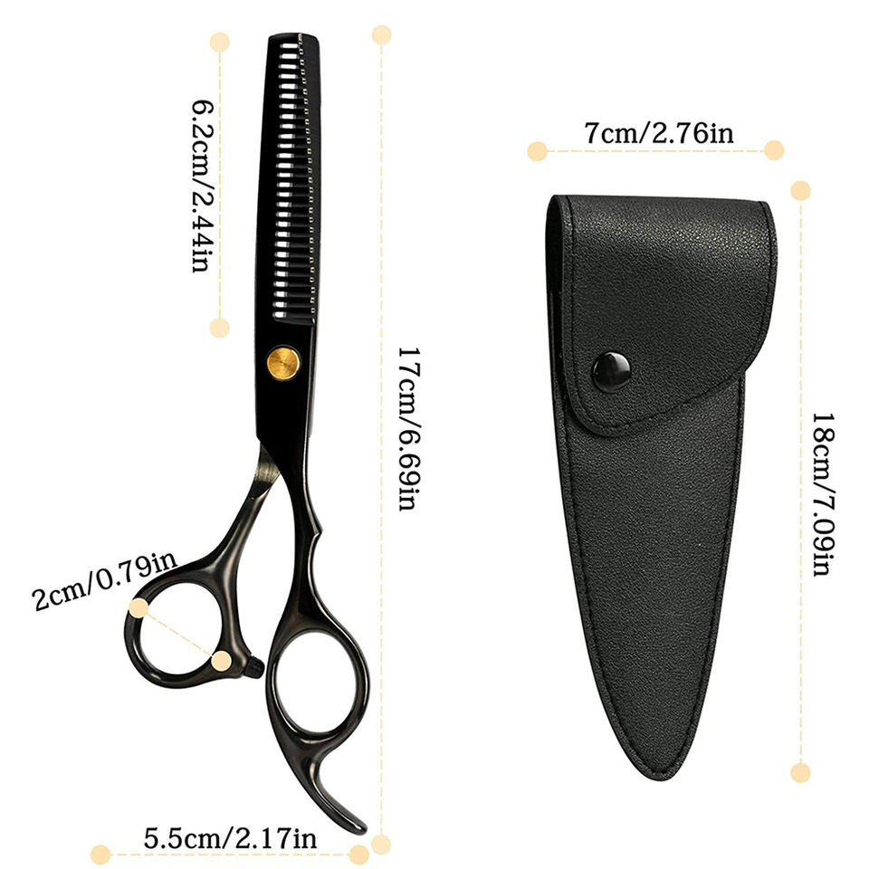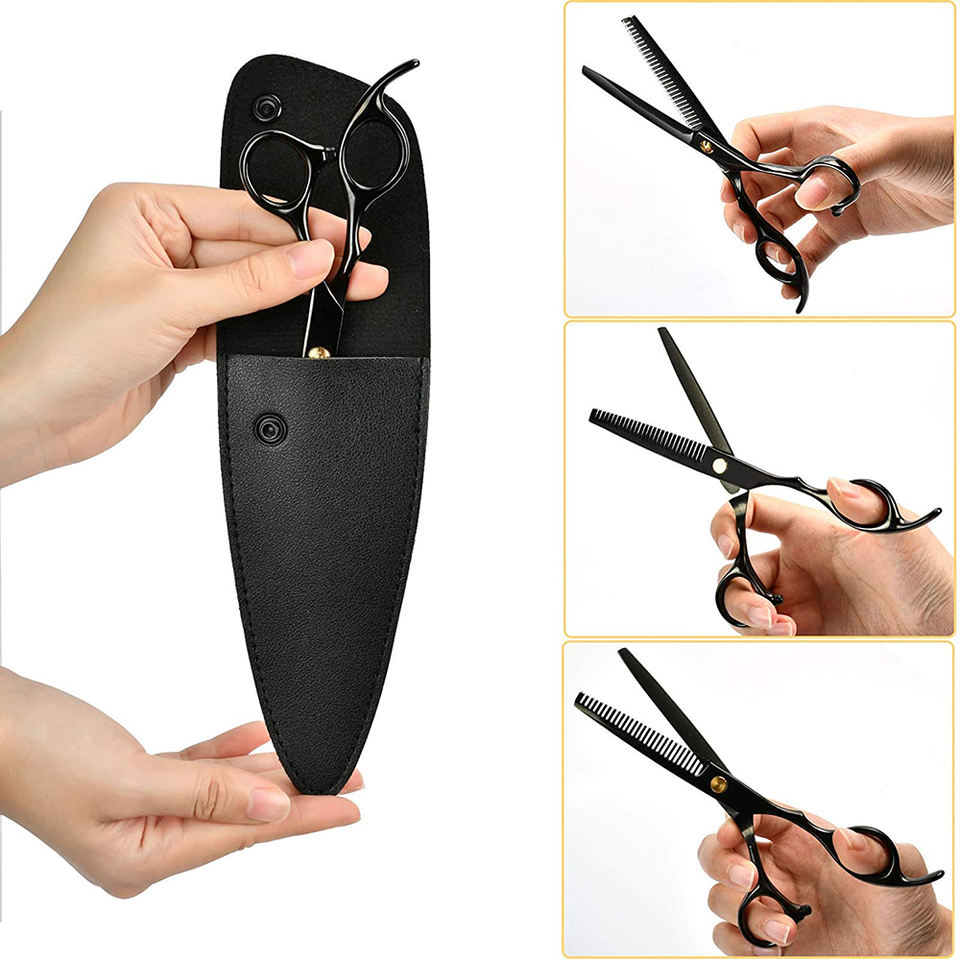 กรรไกรตัดผมสแตนเลส6.5นิ้วสีดำเคลือบพร้อมกระเป๋าหนัง
