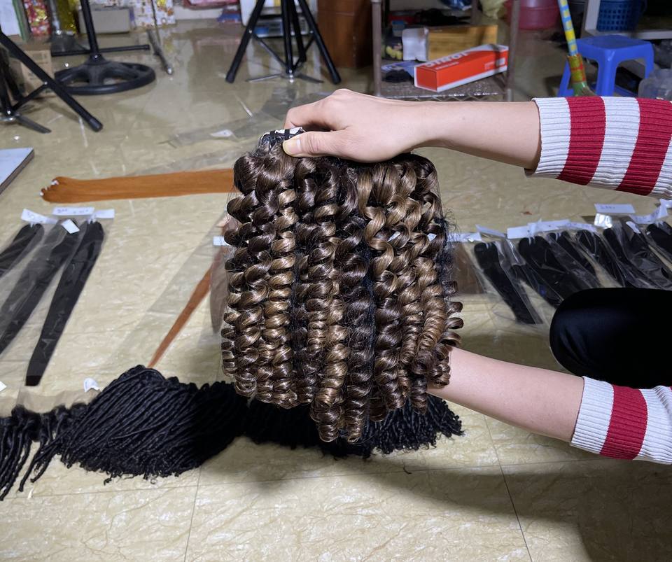 1.หนึ่งชิ้นต่อถุง 2.จัดหาลูกค้า 'บรรจุด้วยโลโก้ของพวกเขา (เจรจาต่อรอง) 3.เราตั้งข้อสังเกตผมเป็นเส้นใยสังเคราะห์และตัวอย่างเพื่อให้คุณจะไม่ต้องจ่ายภาษีมากผมมันเองยังคงเป็นผมมนุษย์100%