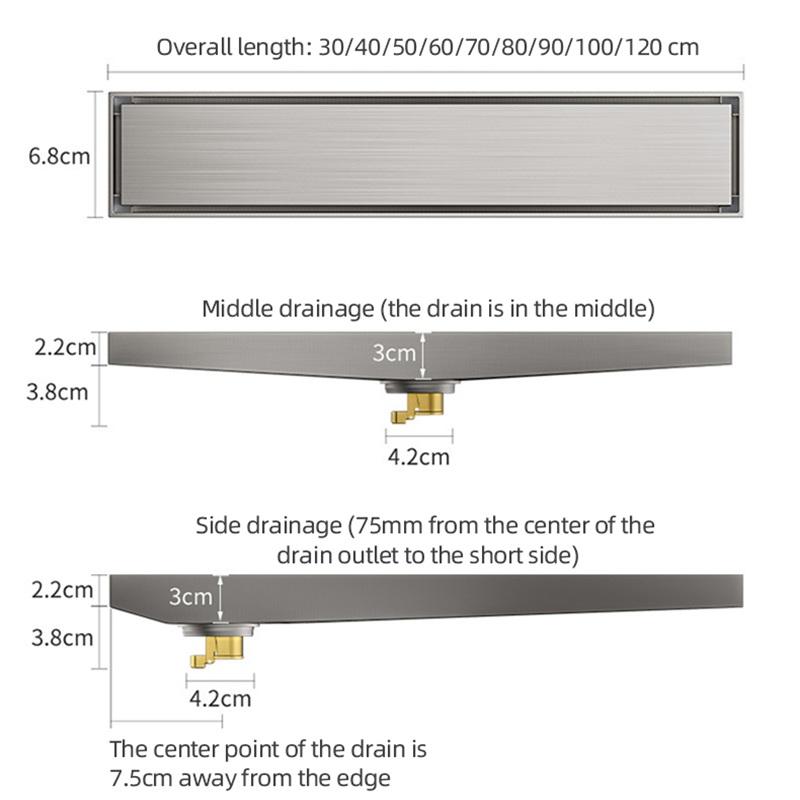 ที่ดักผมแบบเส้นตรง รุ่นโมเดิร์น 204 316 304 สแตนเลสสตีล สำหรับปูกระเบื้อง ตัวกรองเส้นผม ท่อระบายน้ำสำหรับห้องน้ำ ห้องอาบน้ำ