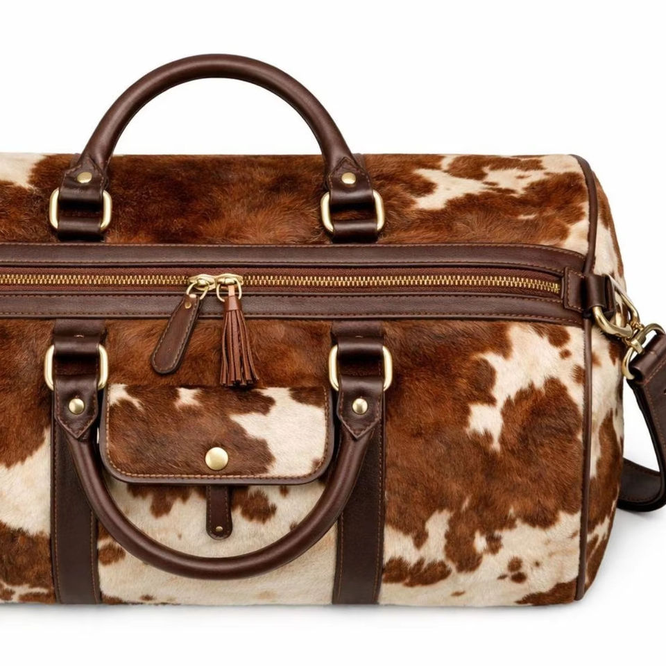 กระเป๋าหนังวัวแท้ หนังแท้ ทำด้วยมือ น้ำหนักเบา กระเป๋าเดินทางแบบมีซิป แฟชั่น กระเป๋าเดินทางพกพา วินเทจ ความจุขนาดใหญ่