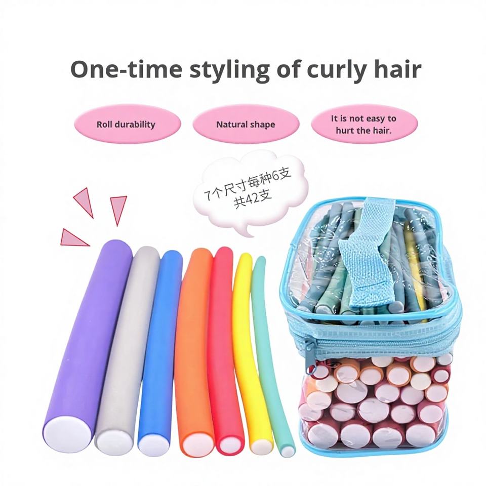 ที่ม้วนผมไม่ทำร้ายเส้นผม รูปทรงธรรมชาติ ไม้ดัดผมเย็นแบบมหัศจรรย์ ชุด 42 ชิ้น หลายขนาด ผลิตในประเทศจีน