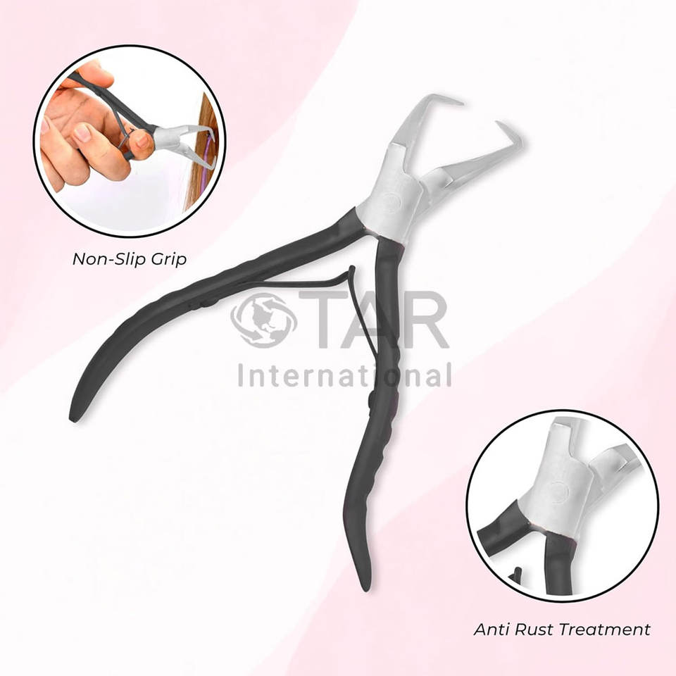 อุปกรณ์ต่อผมคีมถอดลูกปัดสแตนเลสสีดำทนทานต่อการต่อผมเครื่องมือสำหรับมืออาชีพใช้ง่าย