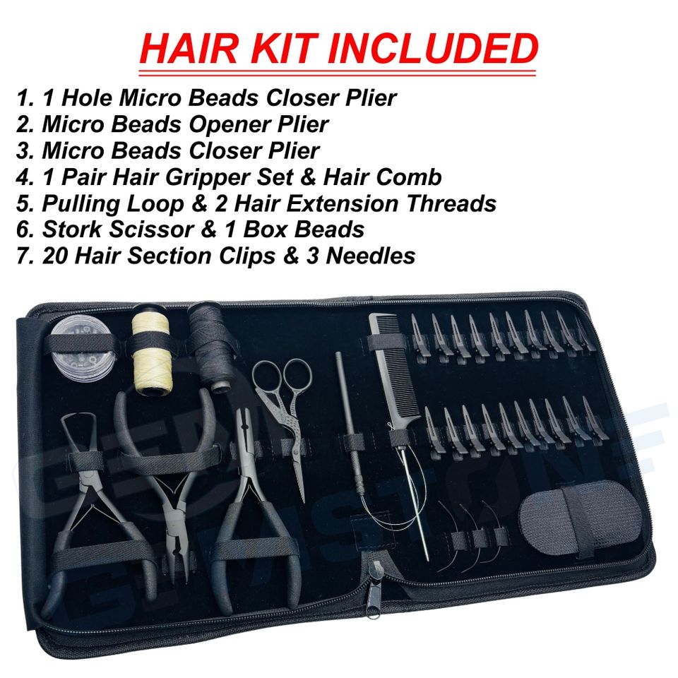 ชุดเครื่องมือติดตั้งต่อผม สแตนเลสสตีล ไมโครริง แหวนร้อยผม คีม ที่ร้อยผม คลิปหนีบผม กรรไกร ทนทาน