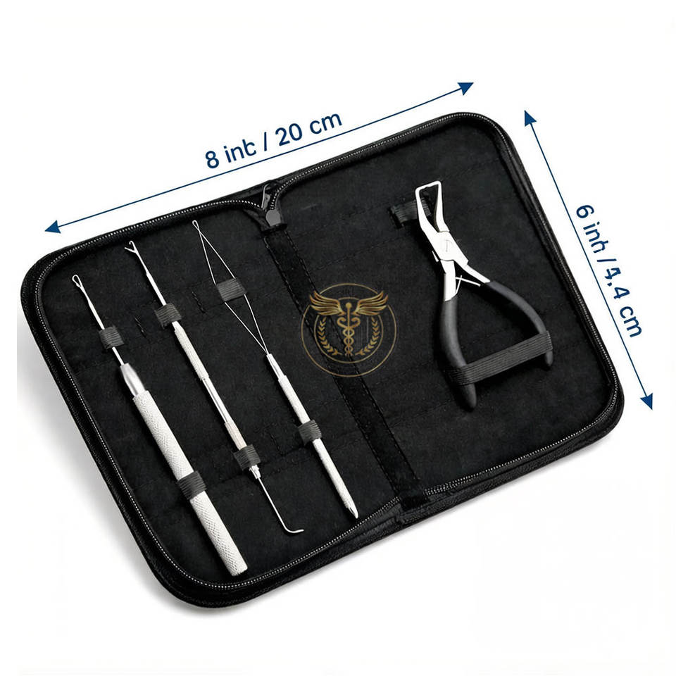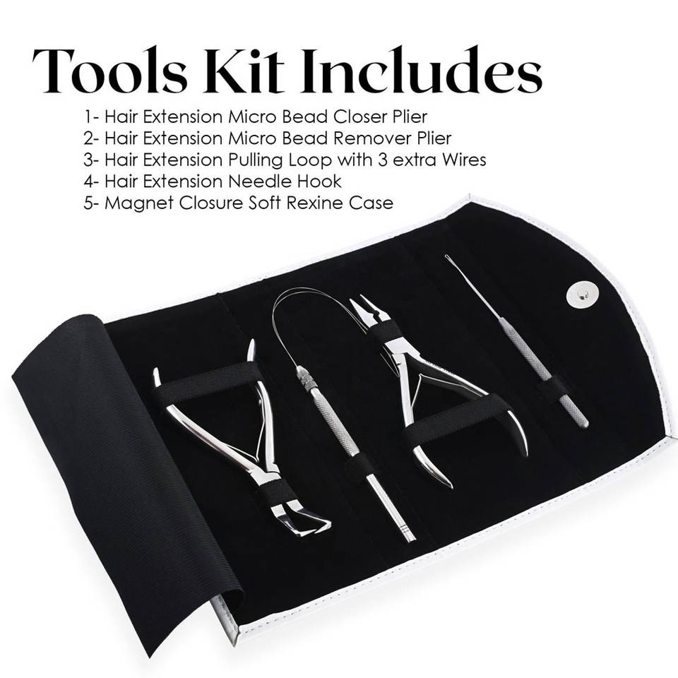 ชุดอุปกรณ์ต่อผมแบบไมโครริง ทำจากสแตนเลส ประกอบด้วยคีม เข็มเกี่ยว และเข็มดึง สำหรับต่อผมแบบ I Tip และ Nano Ring
