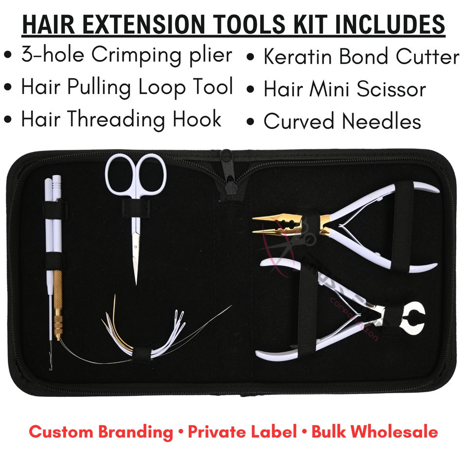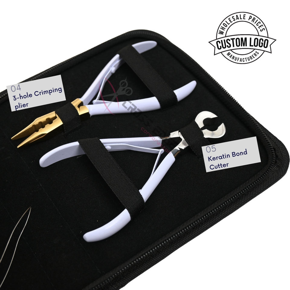 ชุดเครื่องมือต่อผม พร้อมคีมย้ำปลายแบบ 3 รู และคีมตัด