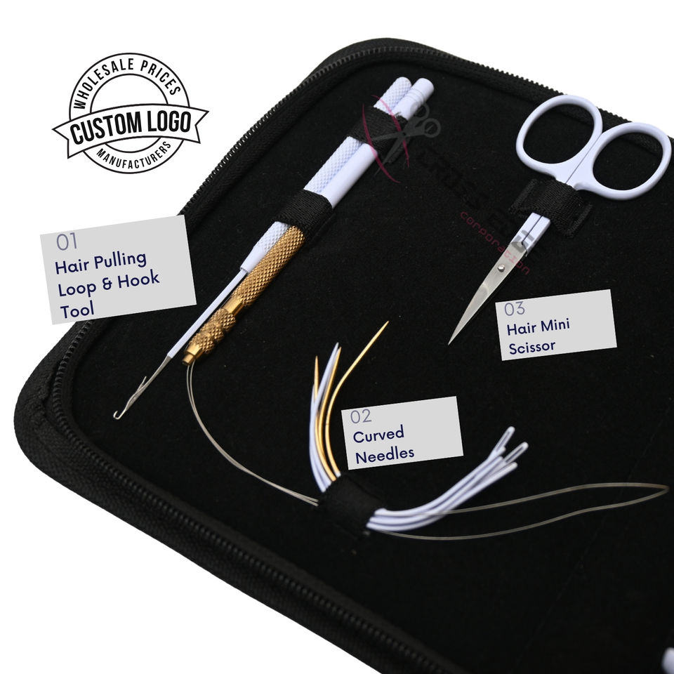 ชุดเข็มเย็บผมสำหรับร้านเสริมสวย แบบสามรู พร้อมอุปกรณ์ไมโครลิงค์