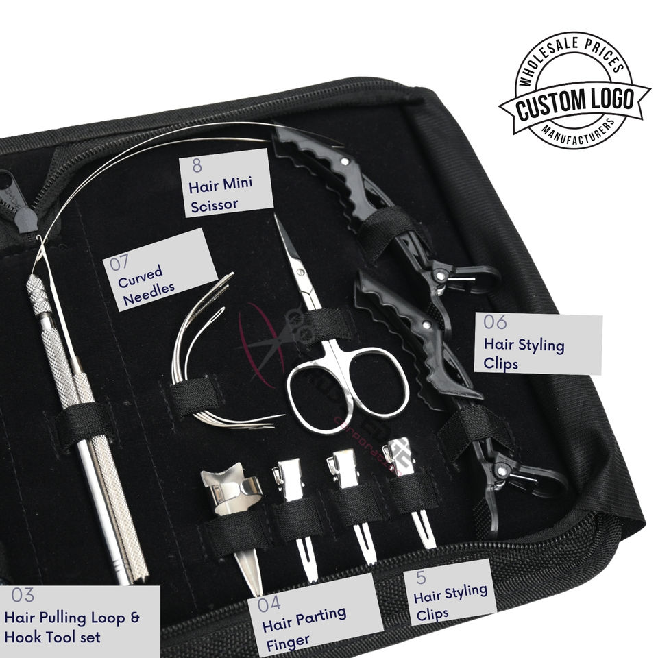 ชุดเข็มเย็บผมสำหรับร้านเสริมสวยระดับมืออาชีพ สไตลิสต์หรูหรา, ชุดตะขอเกี่ยวติดตั้งแฮร์พีชแบบห่วงและแบบปากเป็ด