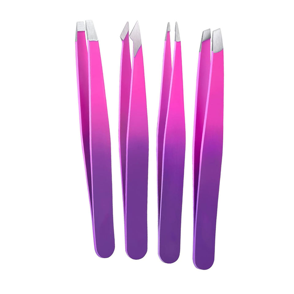 แหนบถอนขนคิ้วปลายเฉียงสแตนเลส สำหรับใช้แต่งหน้าทุกวัน 4 ชิ้น คุณภาพดีแบบสองสี