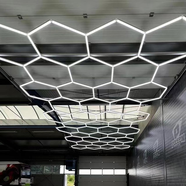 ไฟเพดานโรงรถทรงหกเหลี่ยมหกเหลี่ยมรวงผึ้งหกเหลี่ยมใช้ล้างรถอัตโนมัติร้านเสริมสวยร้านตัดผม