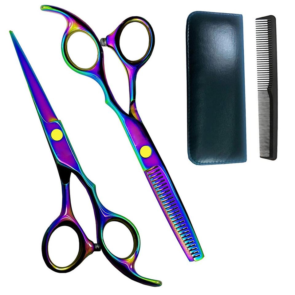กรรไกรตัดผมสำหรับมืออาชีพ,กรรไกรซอยผมสีรุ้งสำหรับใช้ในครัวเรือน