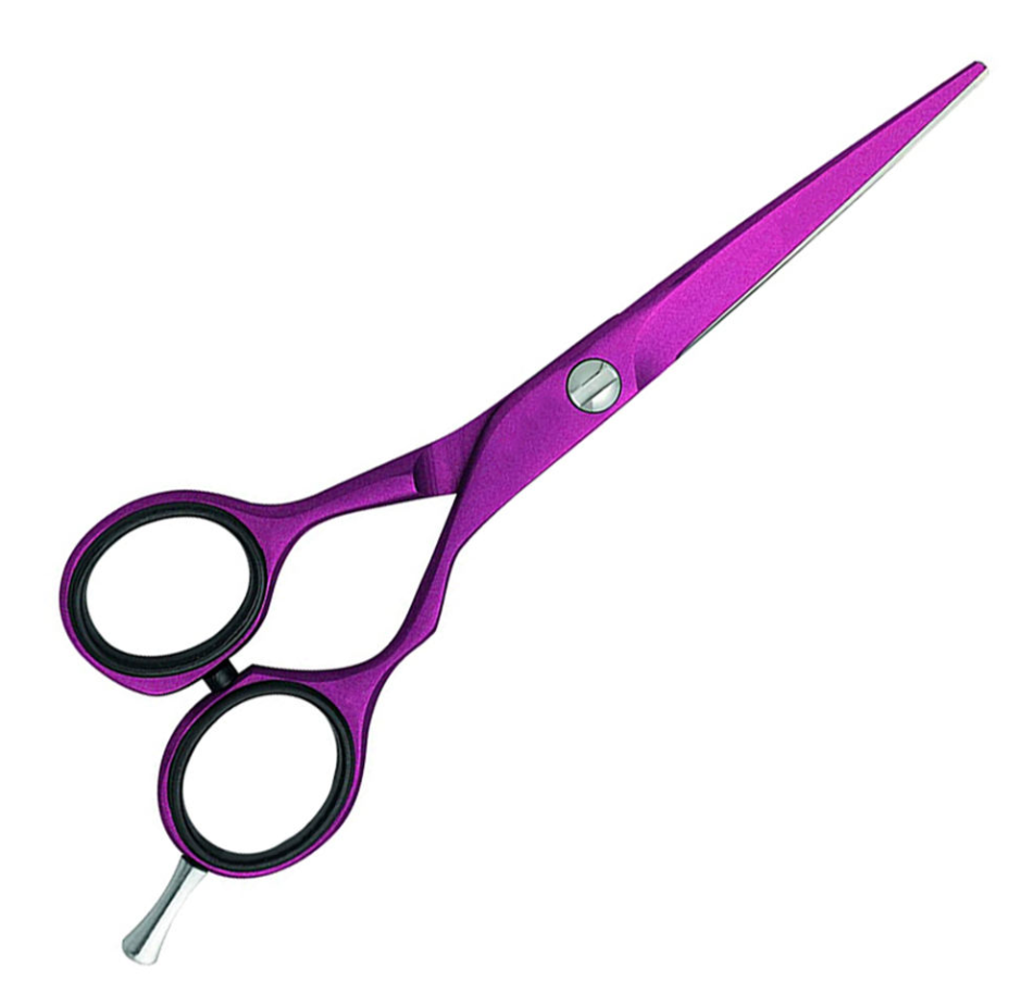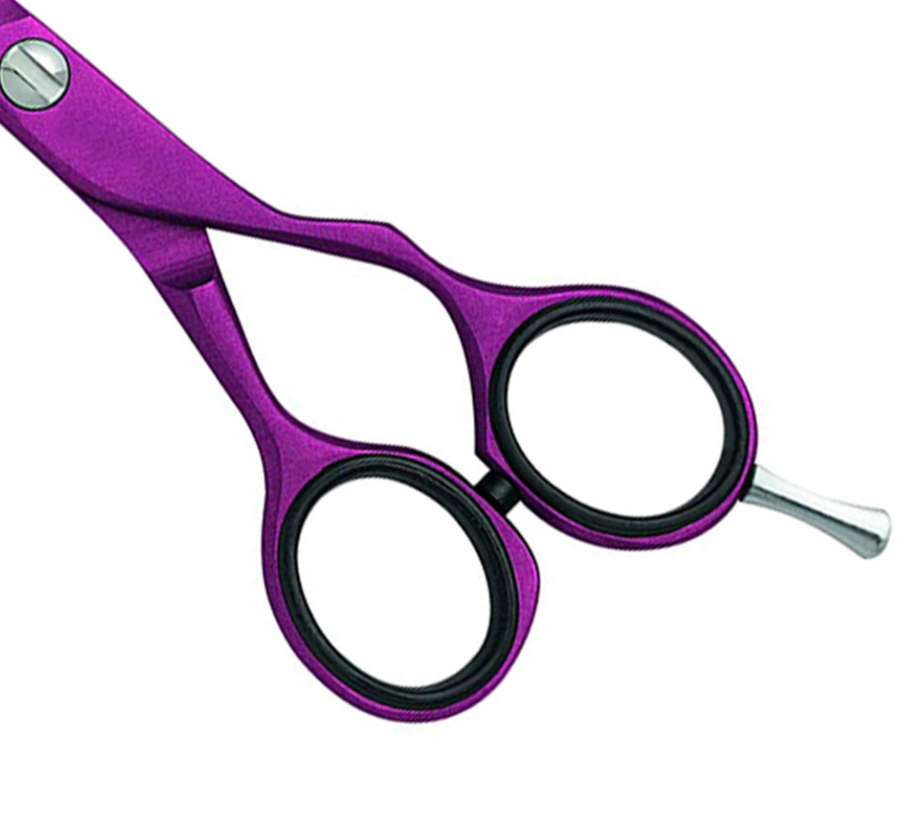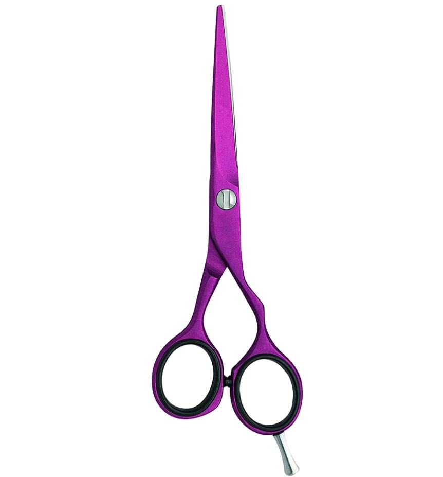 กรรไกรตัดผมสำหรับช่างตัดผมพิมพ์ลายโลโก้ตามสั่งทำจากเหล็ก440C เคลือบสีม่วง