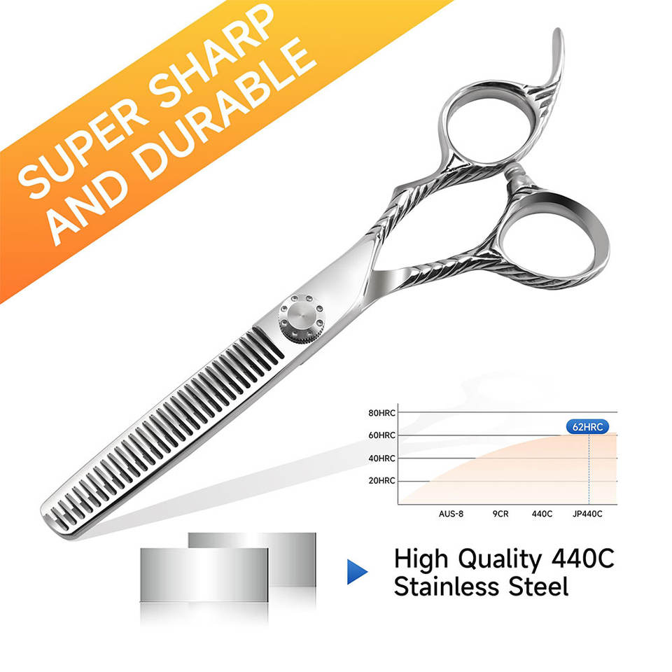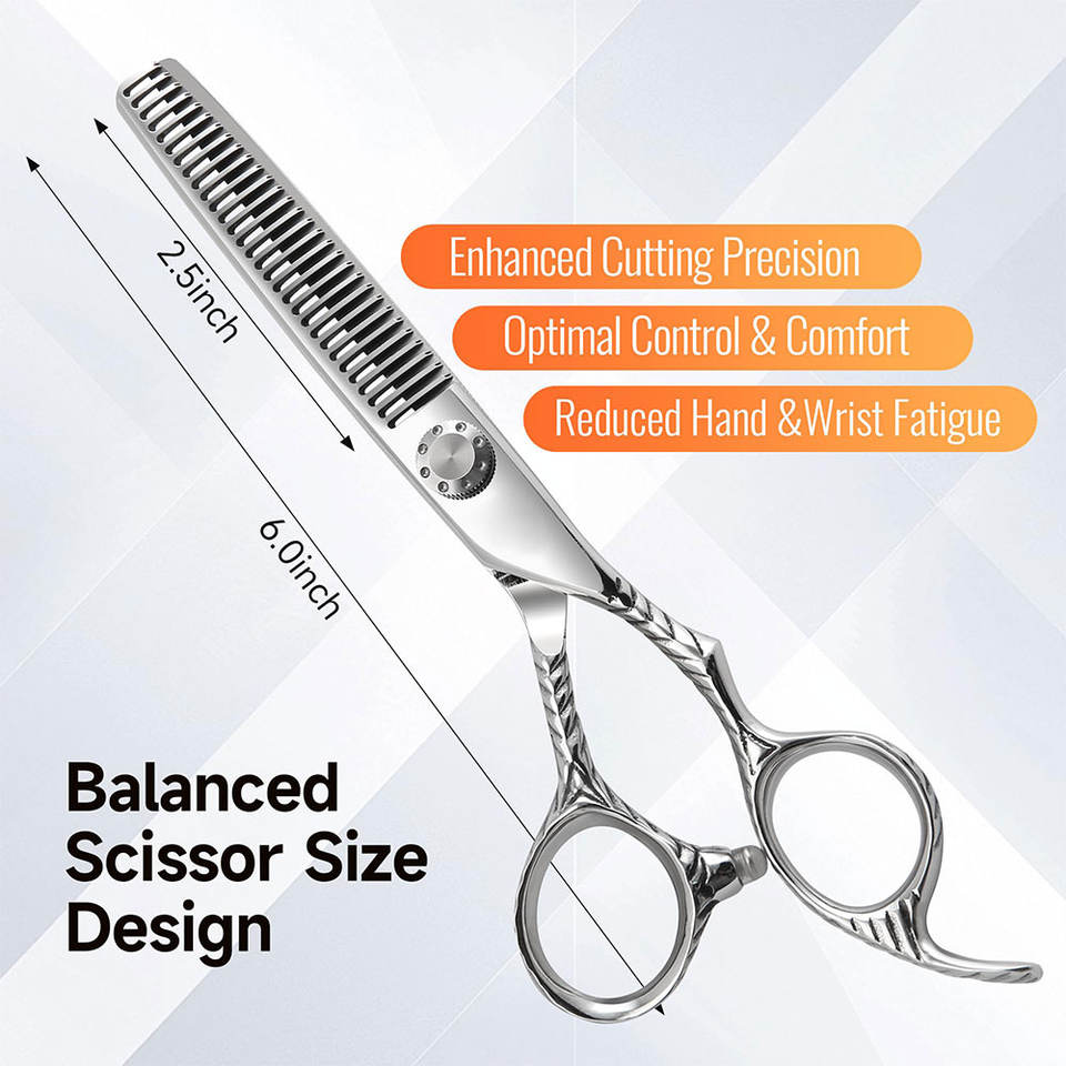 กรรไกรตัดผมแบบบาง6.0นิ้ว440C กรรไกรตัดผมแบบบางพร้อมที่จับสำหรับใช้ในร้านเสริมสวยและใช้ในบ้าน