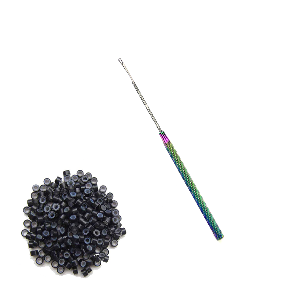 ตะขอเกี่ยวต่อผมเครื่องมือต่อผมห่วงร้อยเข็มเกลียวเข็มลูกปัดและขนนกการต่อผมบาง