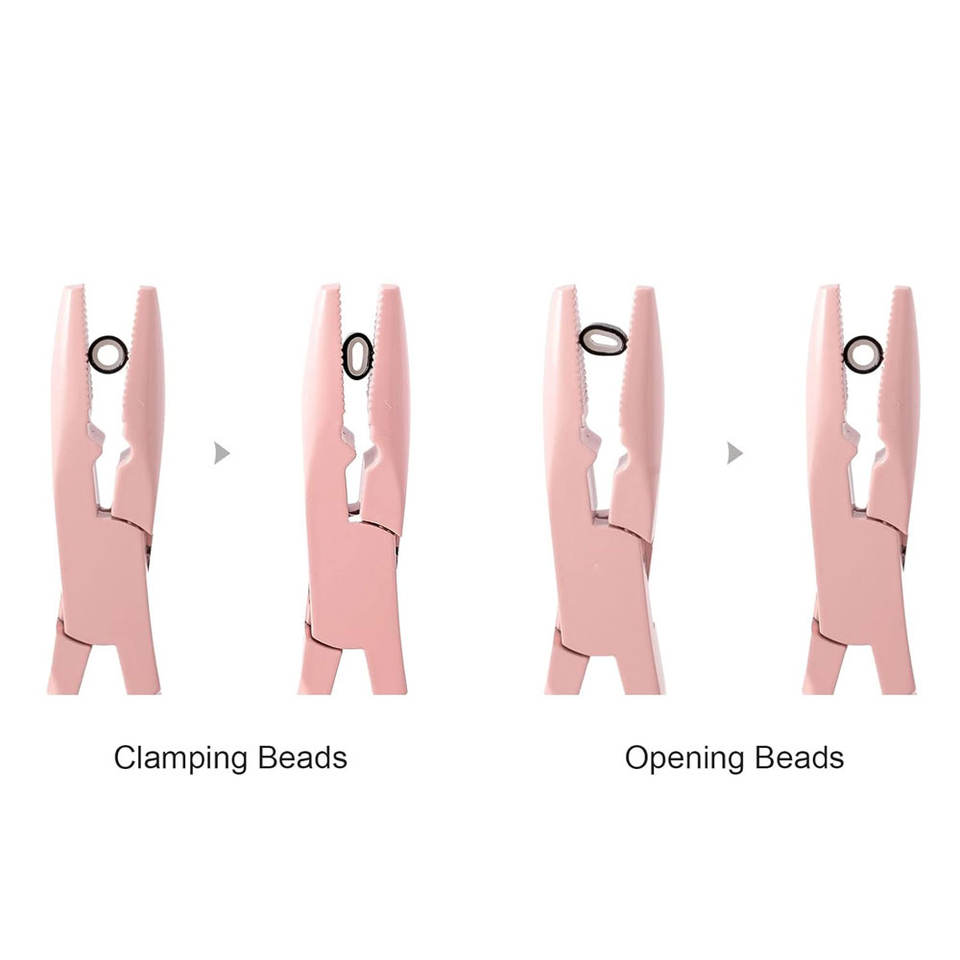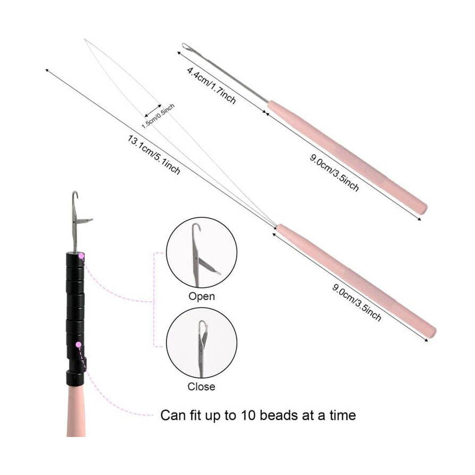ชุดเครื่องมือต่อผม ได้แก่ คีม ห่วงร้อยไหม และไมโครริง สำหรับการต่อผมแบบมืออาชีพ