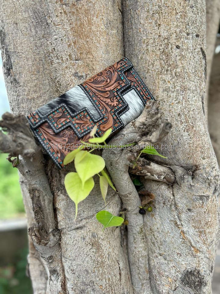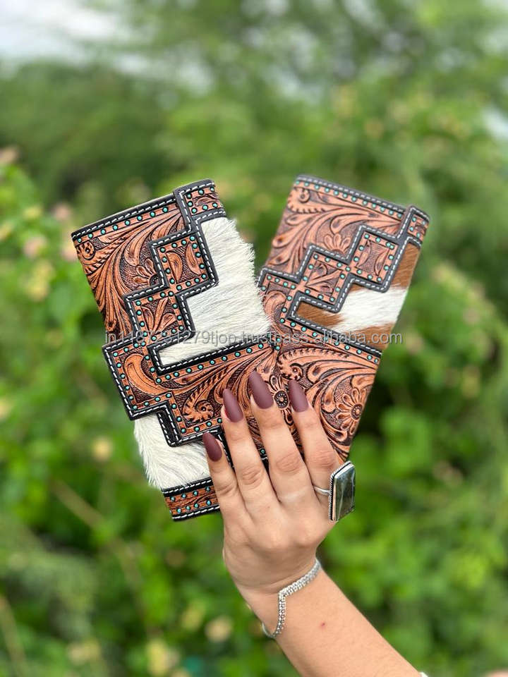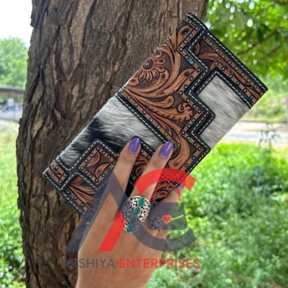 Product name:Designer Tooled Fur Leather Women's Clutch
