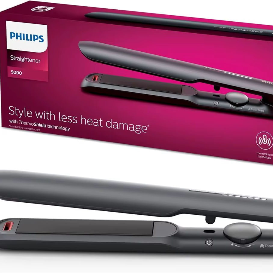 เครื่องยืดผม Philips ชุด5000พร้อมเทคโนโลยีป้องกันความร้อนสีดำ