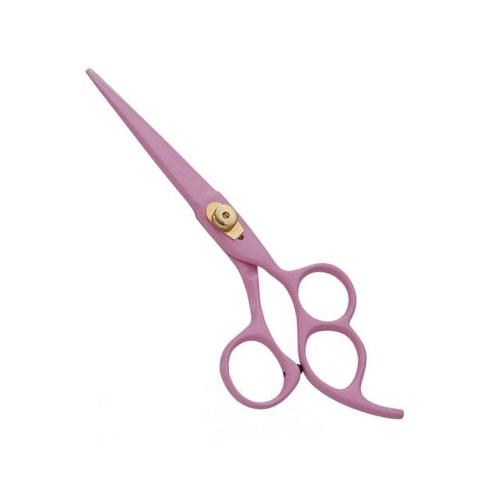 กรรไกรช่างตัดผมพร้อมสกรูสีทองและแหวนสามวงเคลือบสีชมพูกรรไกรตัดผมแบบพรีเมียมมีดโกนใบมีดคม