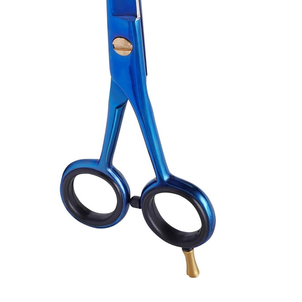 กรรไกรตัดผมสำหรับผู้หญิงและผู้ชาย ระดับพรีเมียม ขนาด 6.5 นิ้ว เคลือบไทเทเนียมสีน้ำเงิน สำหรับร้านเสริมสวยมืออาชีพ