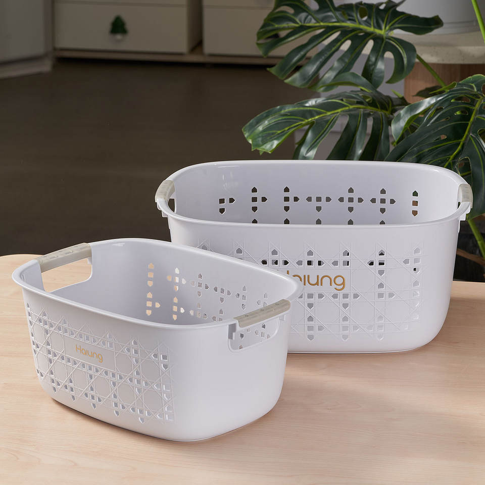 ตะกร้าเก็บของพลาสติกไฮยองทรงวงรีพร้อมหูจับ ตะกร้าจัดระเบียบความจุขนาดใหญ่สำหรับใช้ในห้องน้ำ