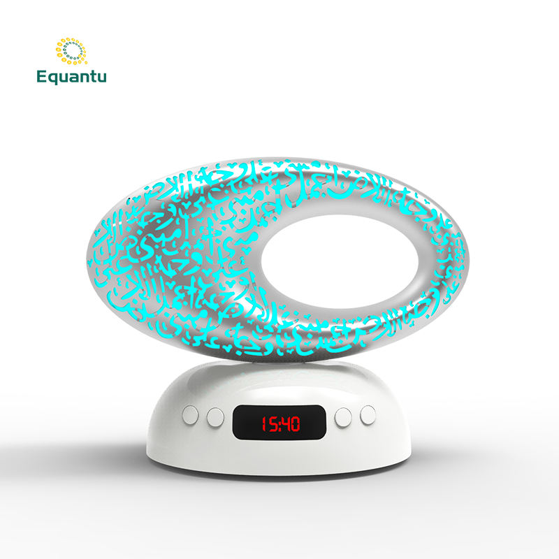เครื่องเล่นเสียงดิจิตอลพร้อมลำโพงอัลกุรอาน ของที่ระลึกสำหรับการเดินทางฮัจญ์ พร้อมนาฬิกาปลุกอะซาน ควบคุมด้วยแอปพลิเคชัน หน้าจอสัมผัส ไฟกลางคืน LED 7 สี