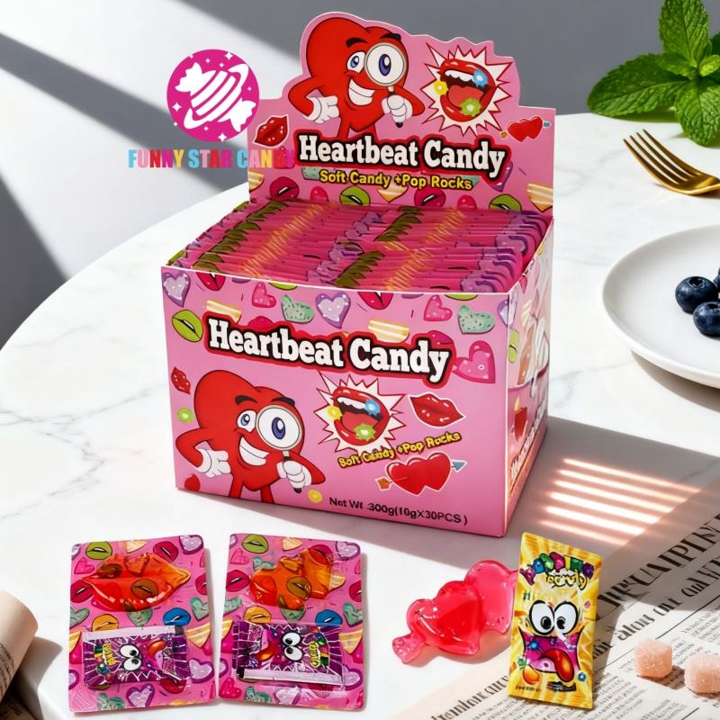 ลูกอมเยลลี่เยลลี่เนื้อนุ่มรูปริมฝีปากสีแดงจังหวะหัวใจเต้น