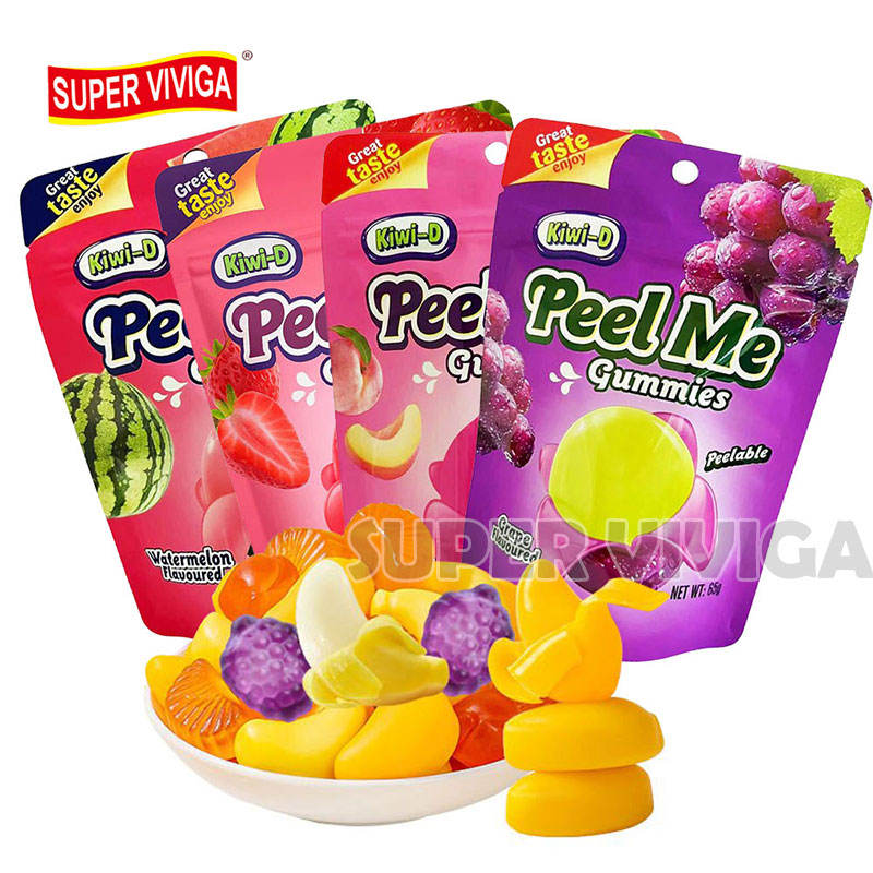 ลูกอมปอกเปลือกผลไม้เยลลี่ผลไม้ปอกเปลือกได้ทำจากพีชมะม่วงแตงโมองุ่นปอกเปลือกหวานอร่อย