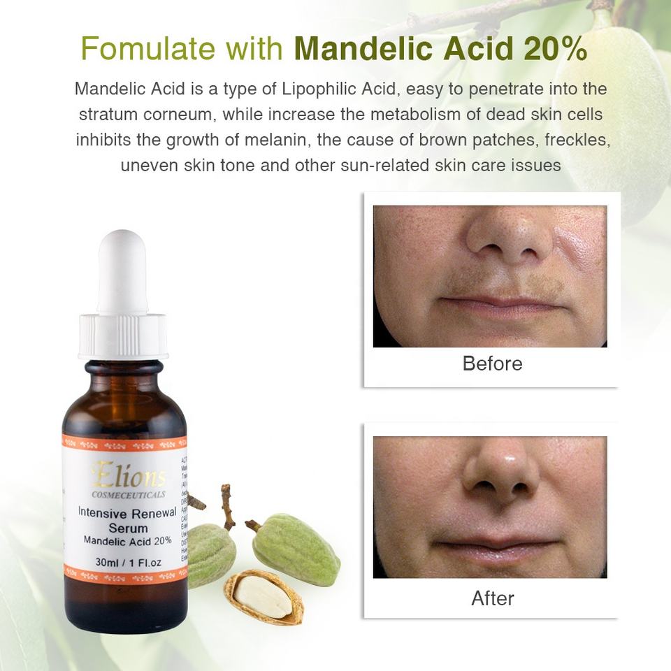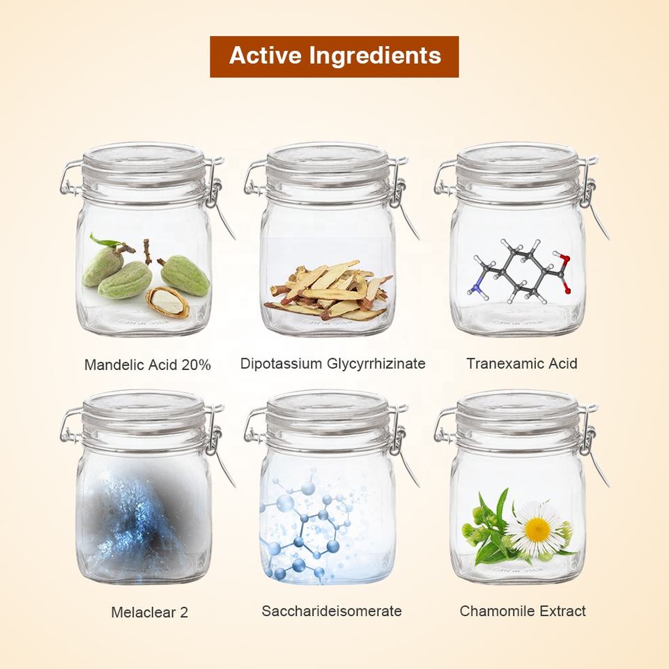 ผลิตภัณฑ์ดูแลผิวฮาลาล AHA ไวท์เทนนิ่ง พีลลิ่ง โซลูชั่น 20% ดีแอล แมนเดลิก แอซิด สำหรับผลัดเซลล์ผิว