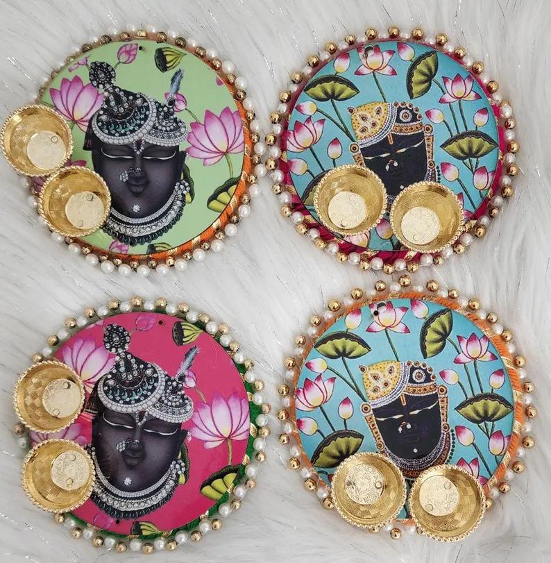 จานฮัลดี คุมคุม หลากสี สำหรับบูชาพระพุทธเจ้า ของชำร่วยงานเมห์นดี อาร์ตี ของตกแต่งบ้านใหม่ อุปกรณ์สำหรับวัด