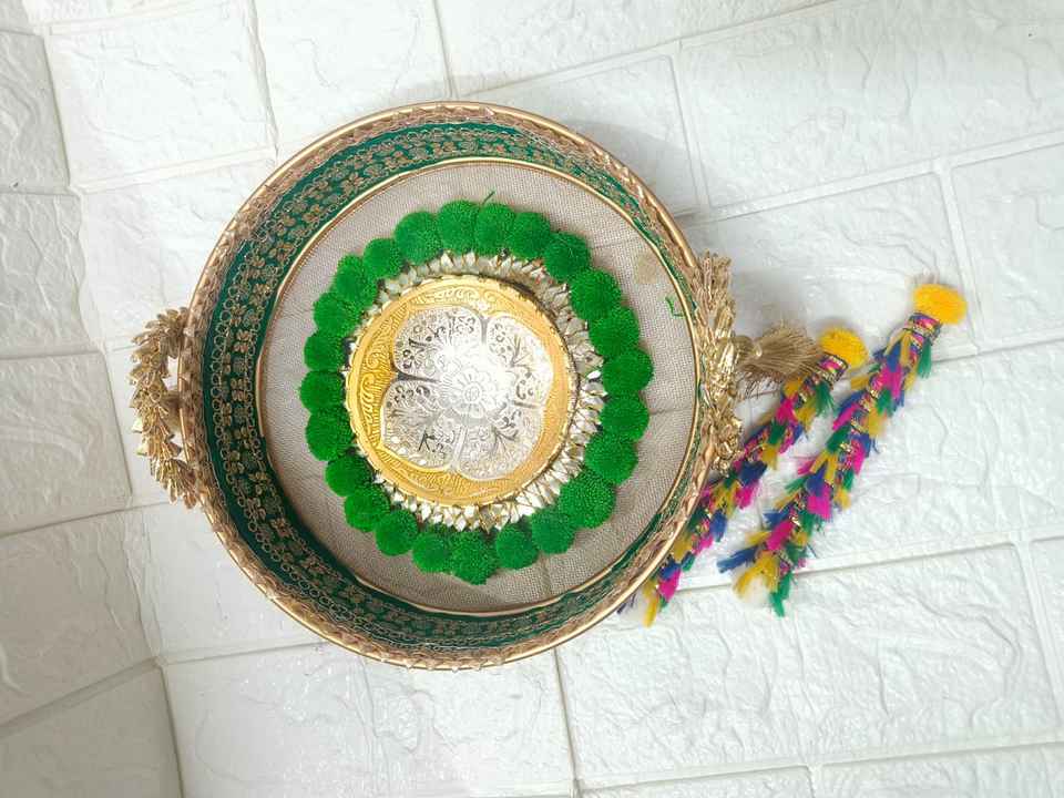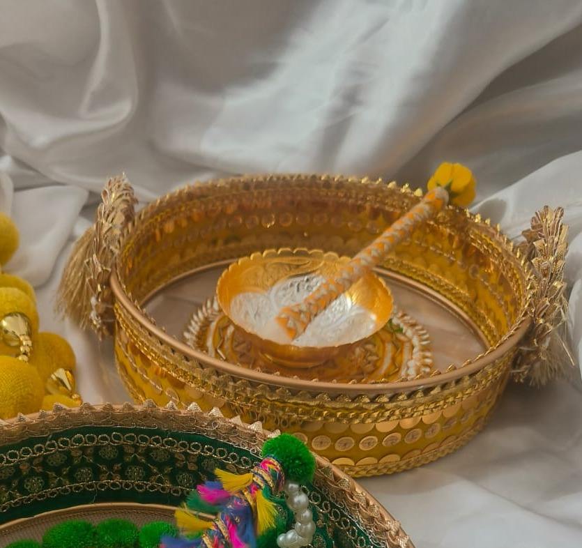 ชุดถาดสำหรับพิธีฮัลดี เมห์นดี ถาดแต่งงานแบบดั้งเดิมพร้อมชามและอุปกรณ์ทาผงพิธี พิธีคุมคุม ดอลกี ถาดสำหรับพิธีแบบดั้งเดิม