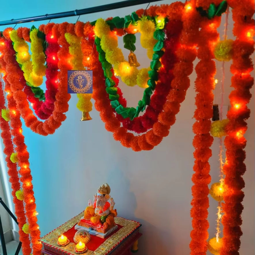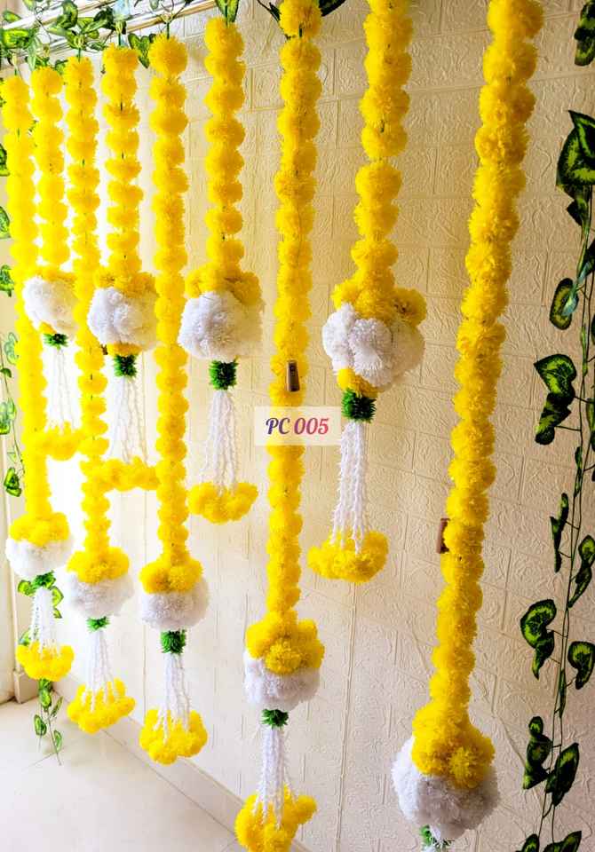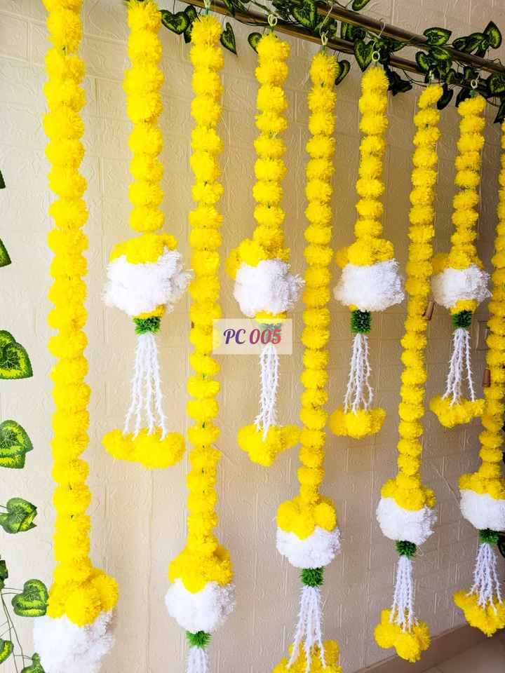 ชุดดอกไม้ประดับงานแต่งงานสีเหลืองและสีขาว ประดับด้วยดอกดาวเรือง สำหรับตกแต่งมณฑป งานแต่งงานแบบอินเดีย และตกแต่งเต็นท์