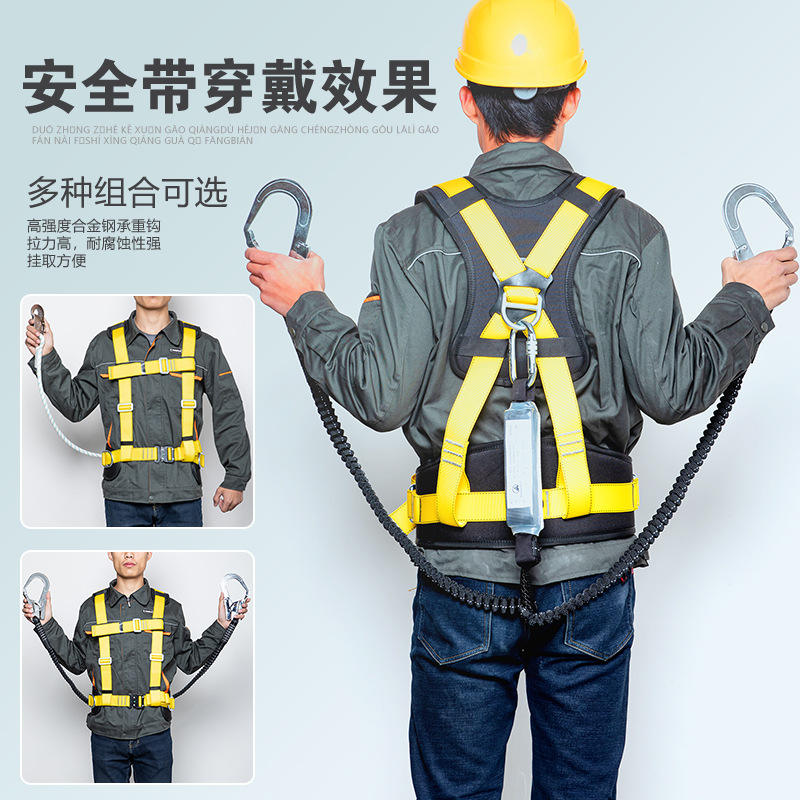เข็มขัดนิรภัยครึ่งตัว โพลีเอสเตอร์ ปรับความยาวได้ หัวเข็มขัดแบบลิ้น ป้องกันการตกจากที่สูงสำหรับงานก่อสร้าง