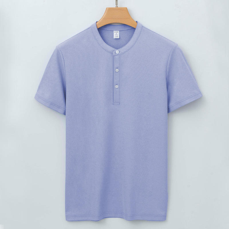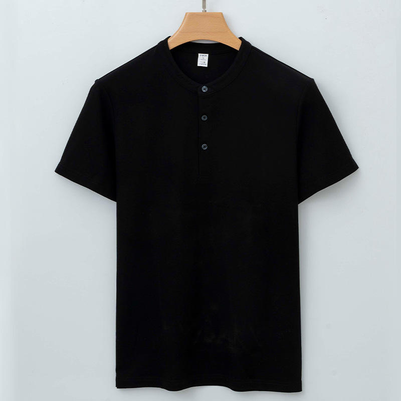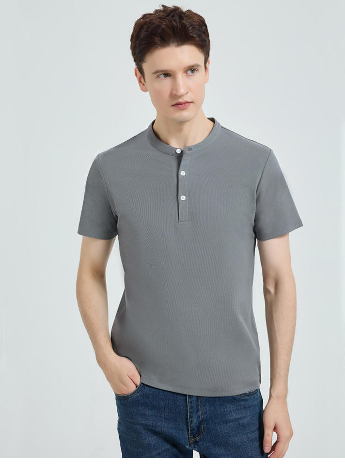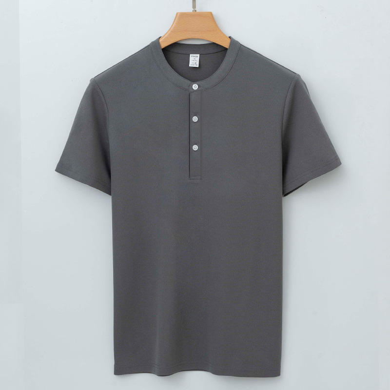เสื้อยืดทรงสลิมฟิตสำหรับผู้ชายพร้อมกระดุมผ่าครึ่งหน้ามีเอกลักษณ์สไตล์กึ่งเปิดด้านหน้าผสมผสานสบายสำหรับเป็นชั้น