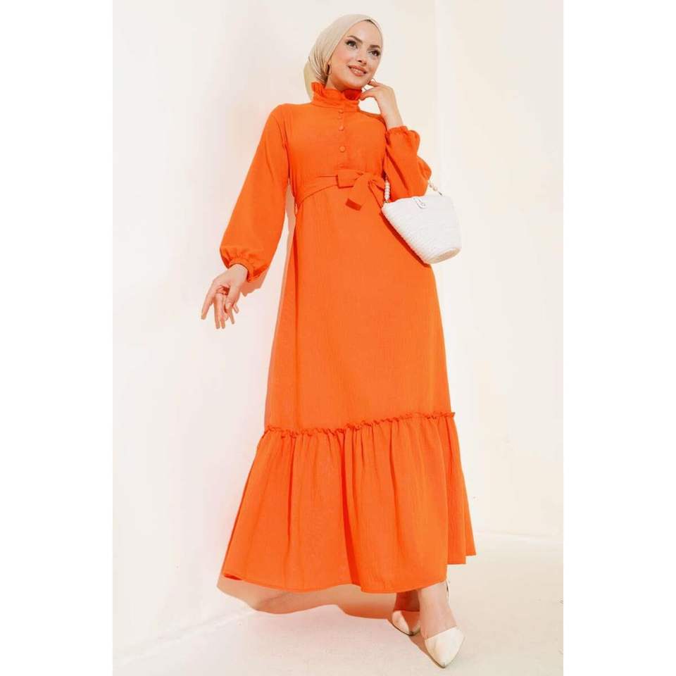 ชุดผ้าลินินติดกระดุมครึ่งหนึ่งสีส้ม