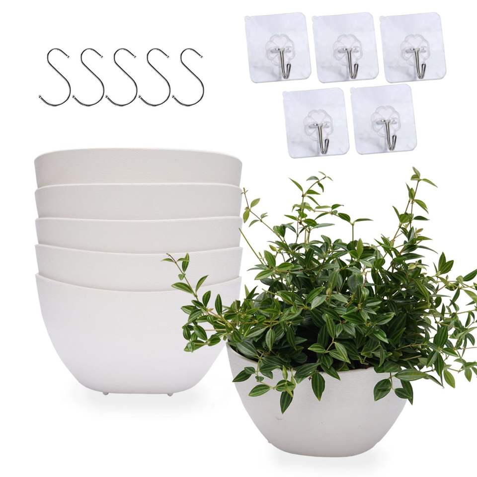 กระถางพลาสติกแบบแขวนติดผนังครึ่งวงกลมทนทานมีสไตล์สำหรับทำสวนในร่มกลางแจ้งเหมาะสำหรับดอกไม้