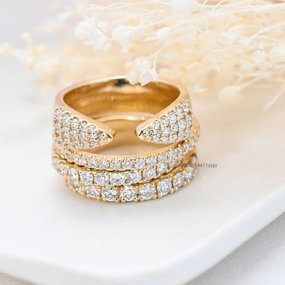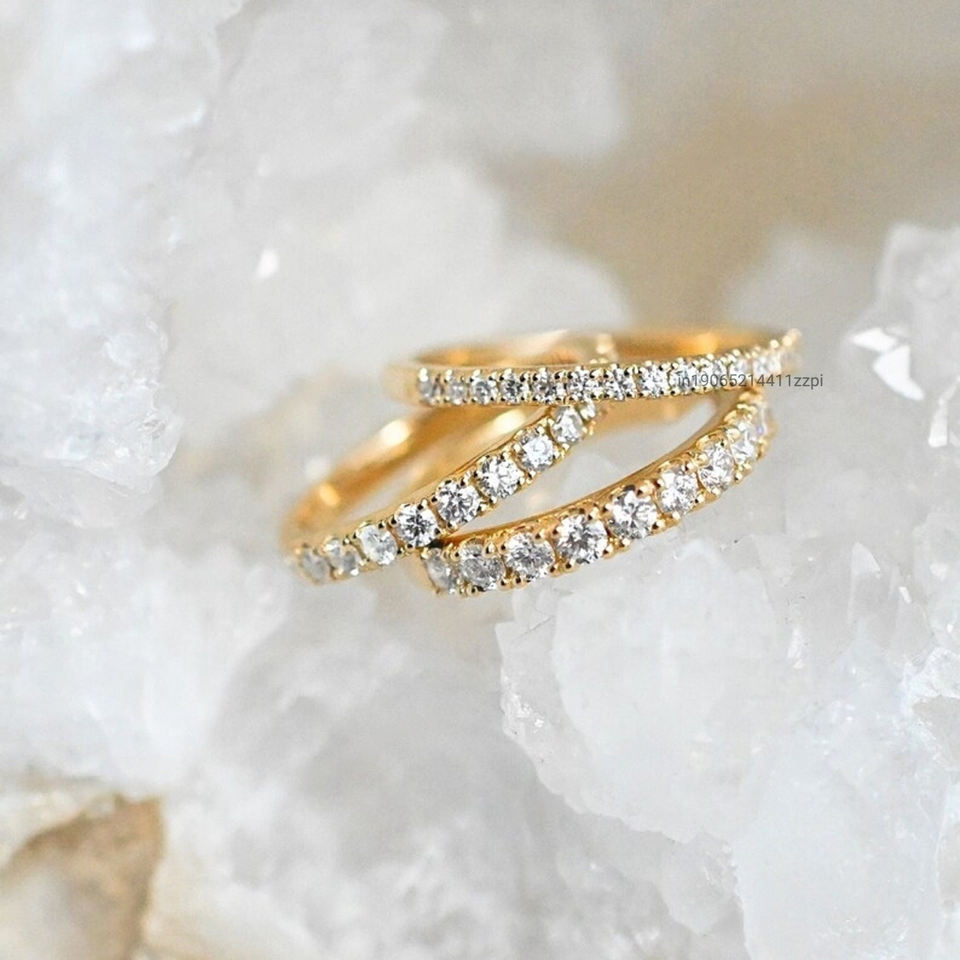 แหวนเพชรโมอิสทรงกลมตัดสีทองแบบเรียบวงแหวนพลอยเข้าคู่สีทอง