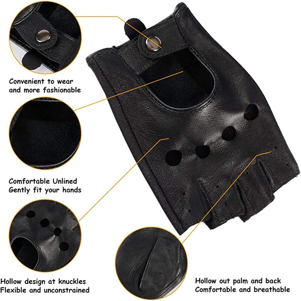 ถุงมือครึ่งนิ้วสีดำเบาะรถจักรยานยนต์สำหรับผู้ชาย/หนังทำถุงมือปกติสำหรับเยาวชน