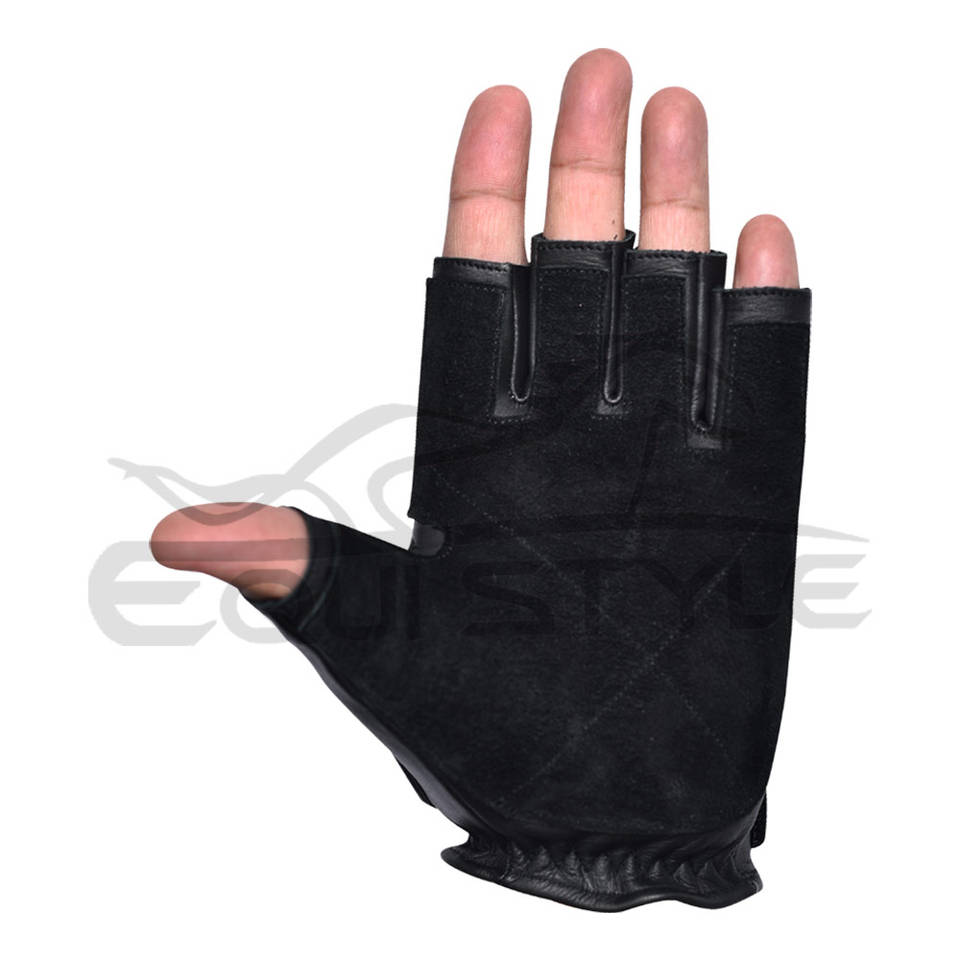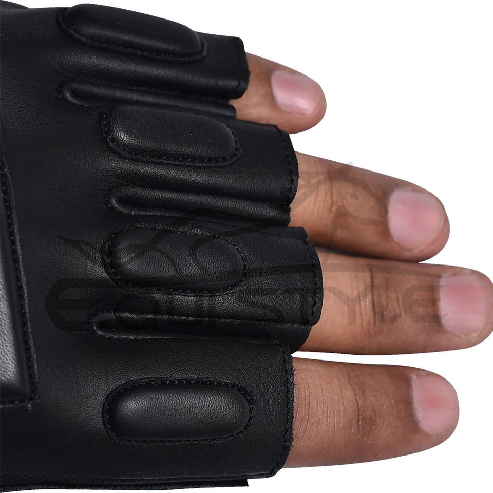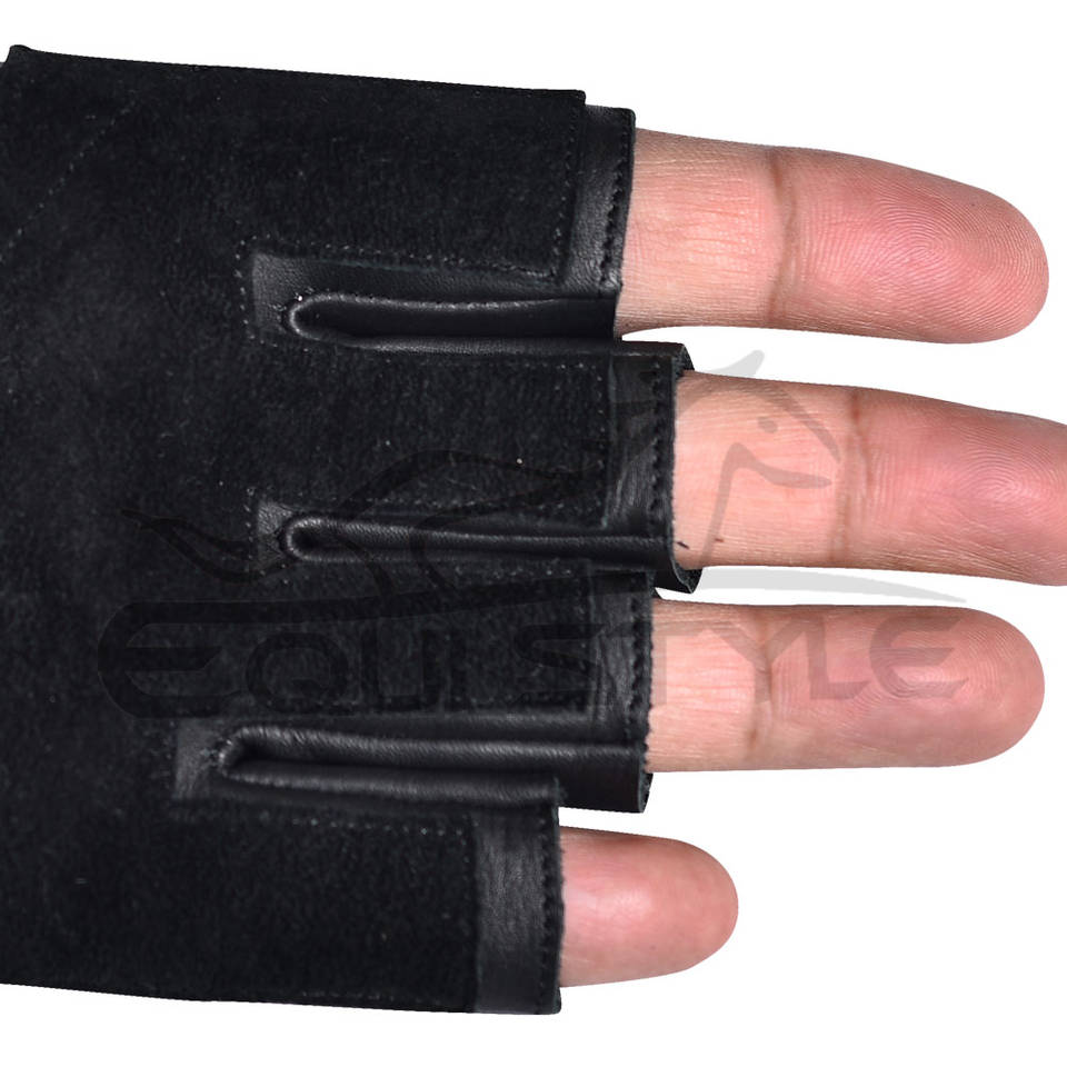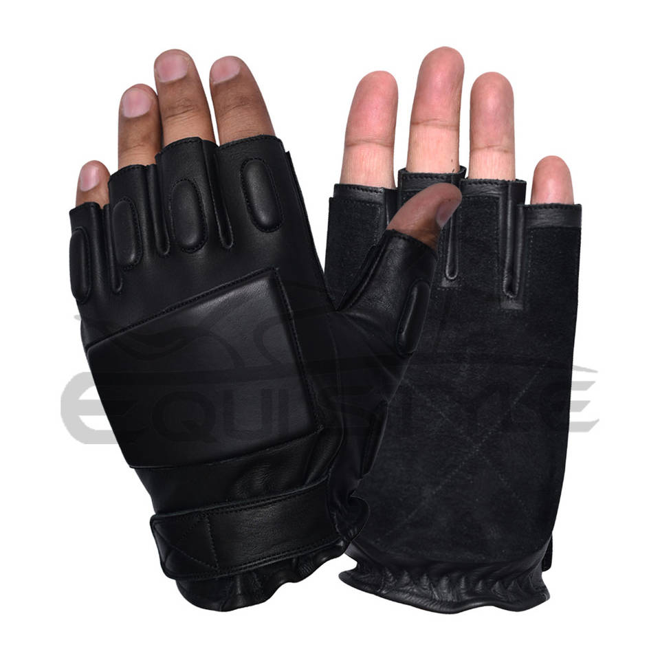 ถุงมือล่าสัตว์ครึ่งนิ้วหนังสังเคราะห์สีดำบุด้วยยางโพลีเอสเตอร์
