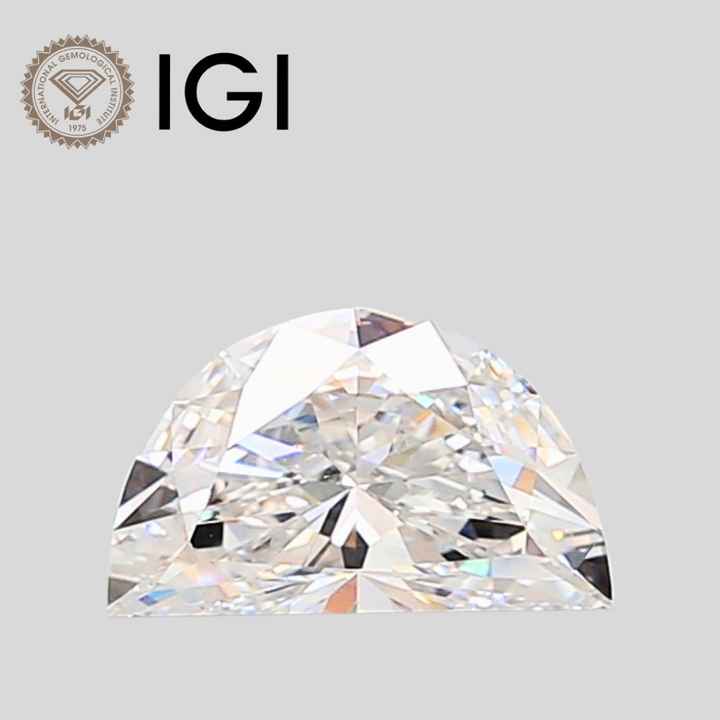 เพชรทรงฮาล์ฟมูน 1 กะรัต E VS1 ได้รับการรับรองจาก IGI แบบหลวม ทรงฮาล์ฟมูน
