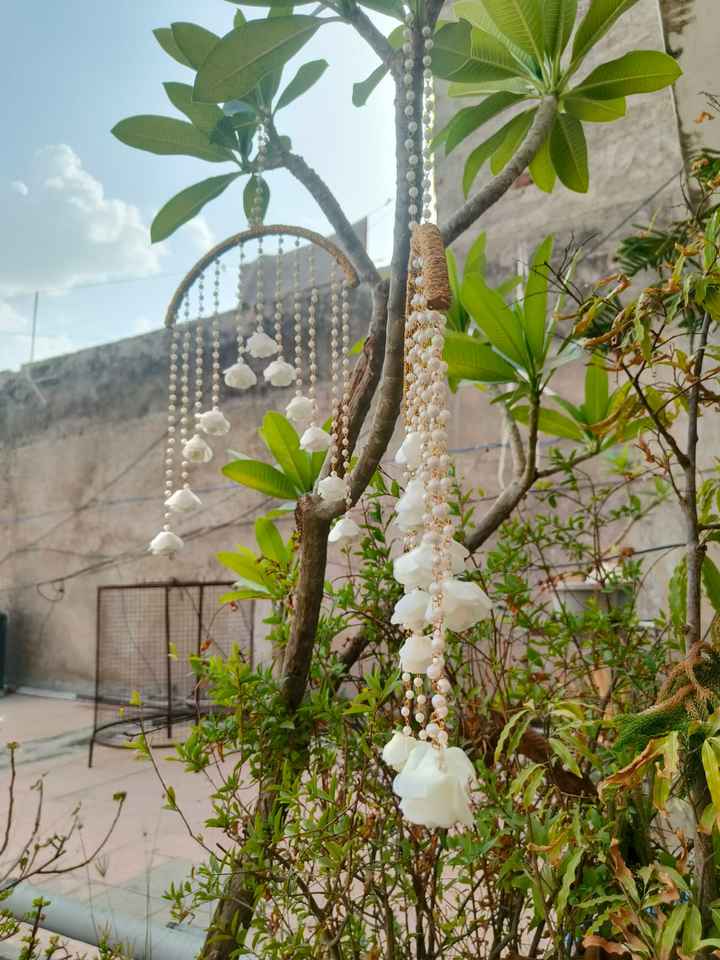 Half Moon Hanging Wall Decor Wedding Haldi Mehndi Stage Backdrop Ceiling Chandelier Decorative Rose Floral Strings Dream capture