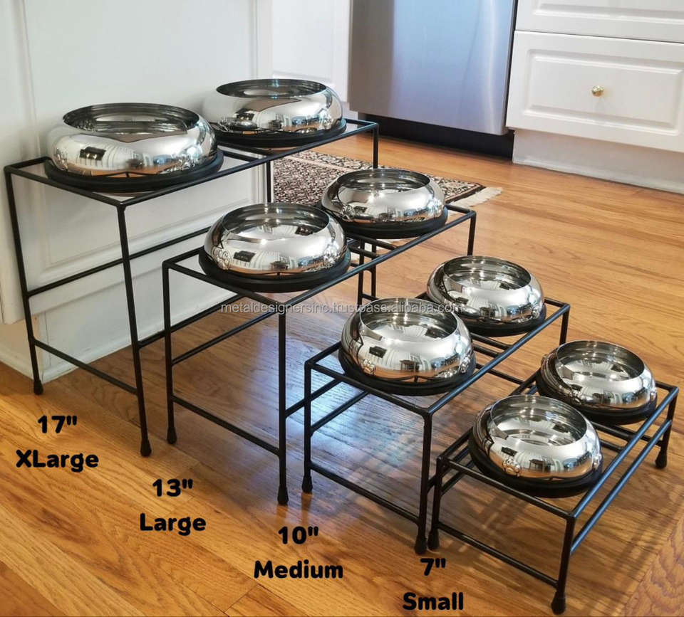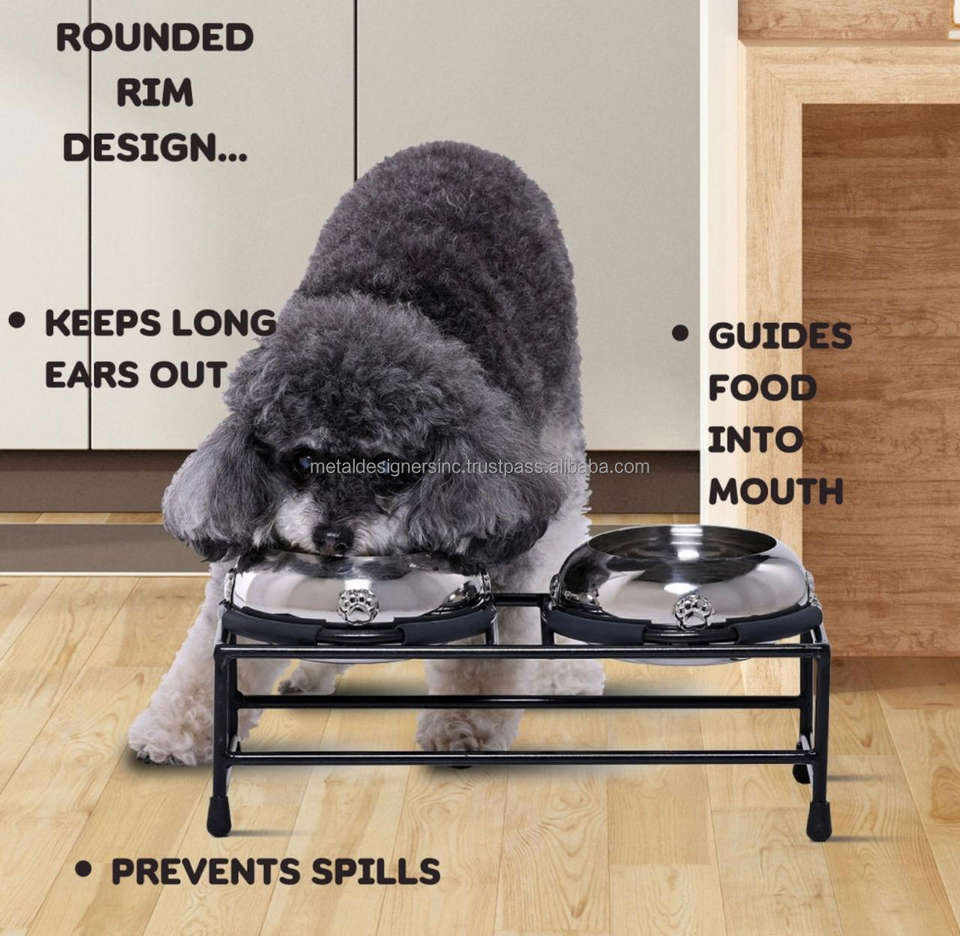 ชามให้อาหารสัตว์เลี้ยงแบบตั้งได้ครึ่งรอบสีดำยกสูงสำหรับแมวทันสมัยหลอดโลหะคู่ป้อนอาหารสัตว์เลี้ยง