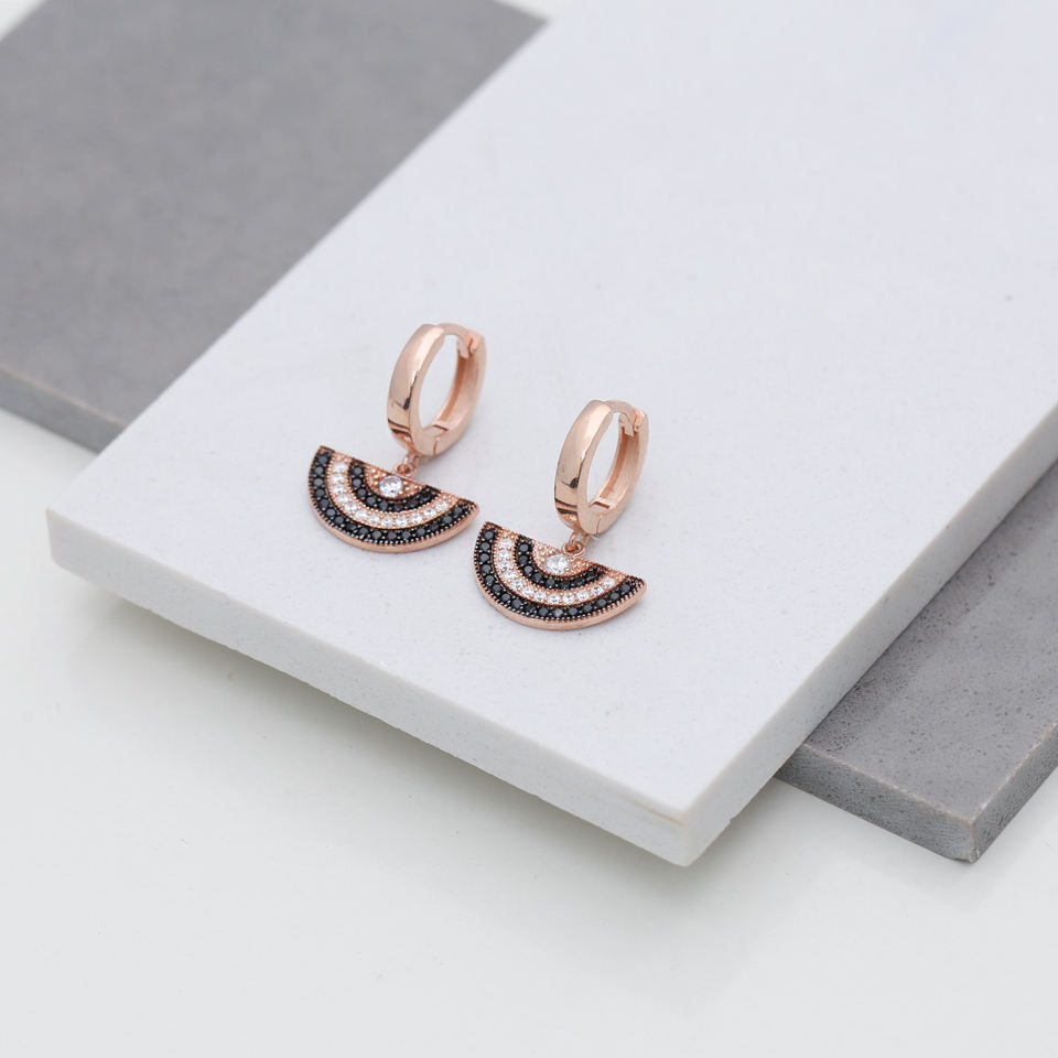 ต่างหูหินสีดำและสีขาวรูปดวงอาทิตย์ครึ่งหนึ่งต่างหูห้อยทำด้วยมือแบบตุรกีขายส่งเครื่องประดับเงินสเตอร์ลิง925
