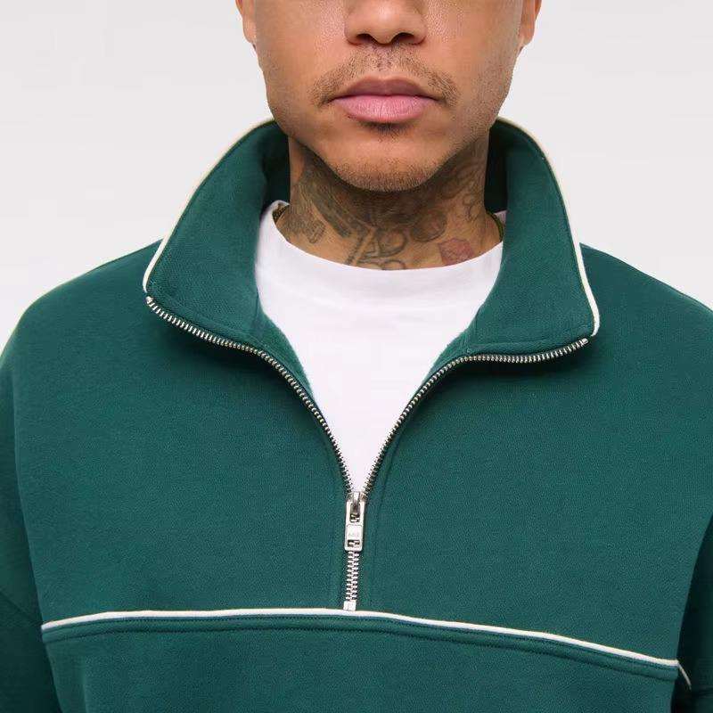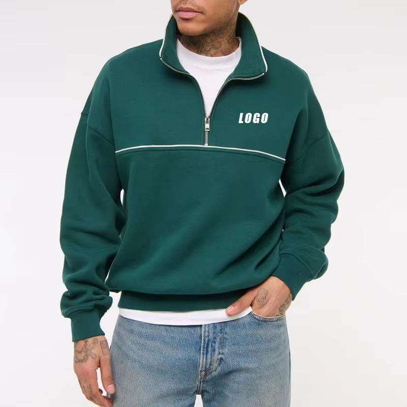 เสื้อสวมหัวมีซิปสำหรับผู้ชายเสื้อกีฬาแขนยาวเปิดไหล่ครึ่งซิปผ้าฟลีซคอสูงสำหรับใส่เล่นกีฬาปรับแต่งโลโก้ได้ตามต้องการ