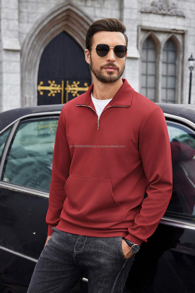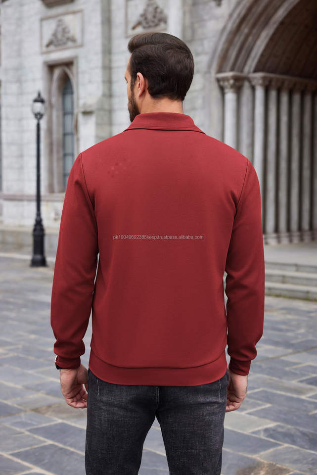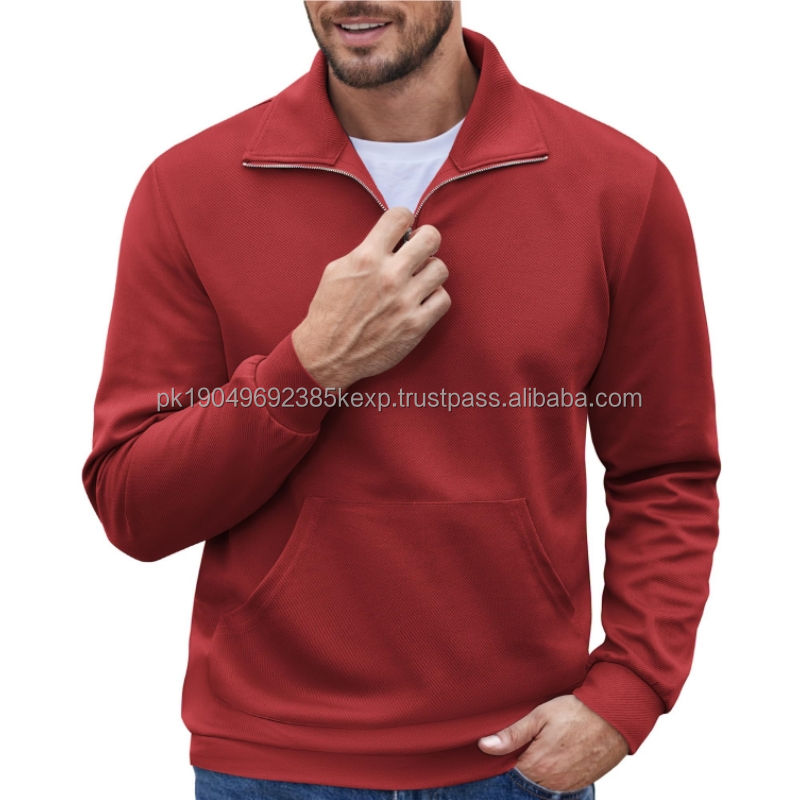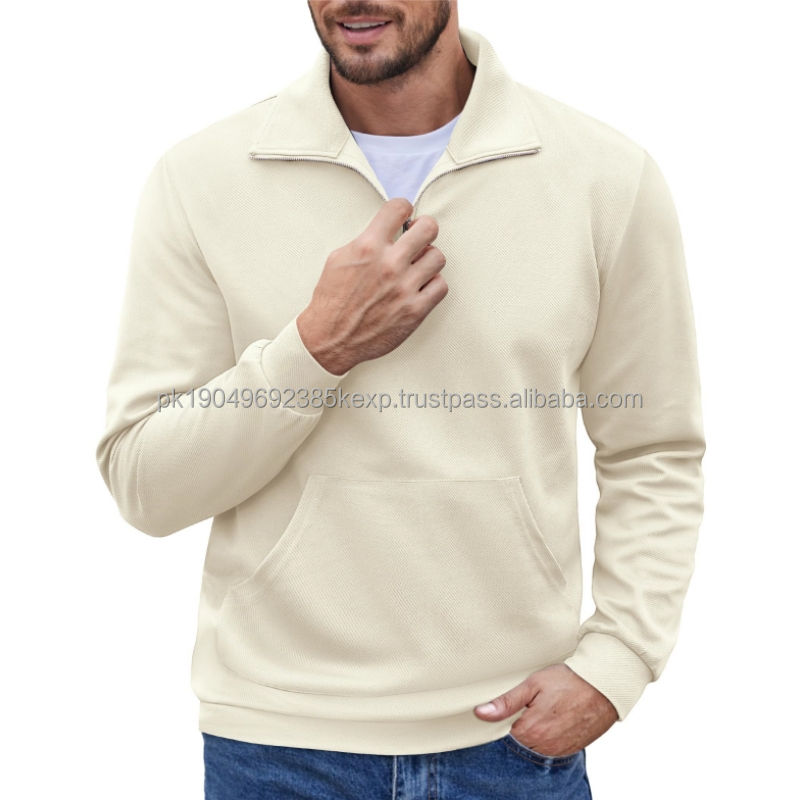 เสื้อสเวตเตอร์คอโปโลแขนยาวแบบสวมศีรษะมีซิปรูดขึ้นแขนยาวลำลองเสื้อสเวตเตอร์เข้ารูปแบบสลิมฟิต