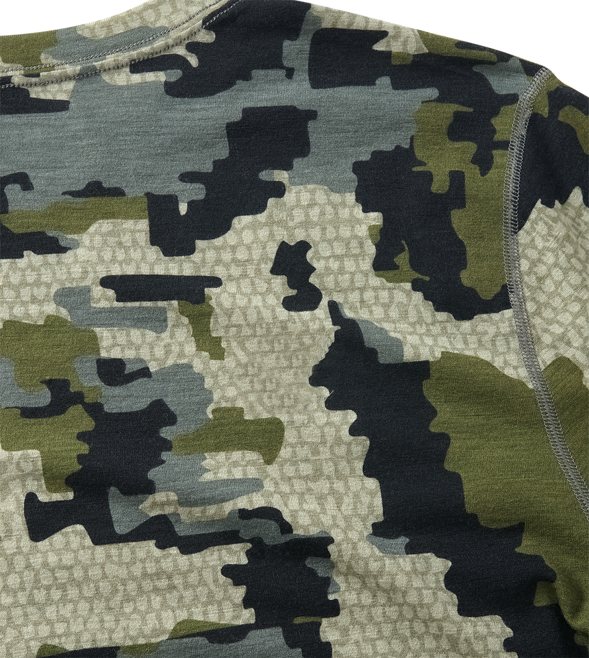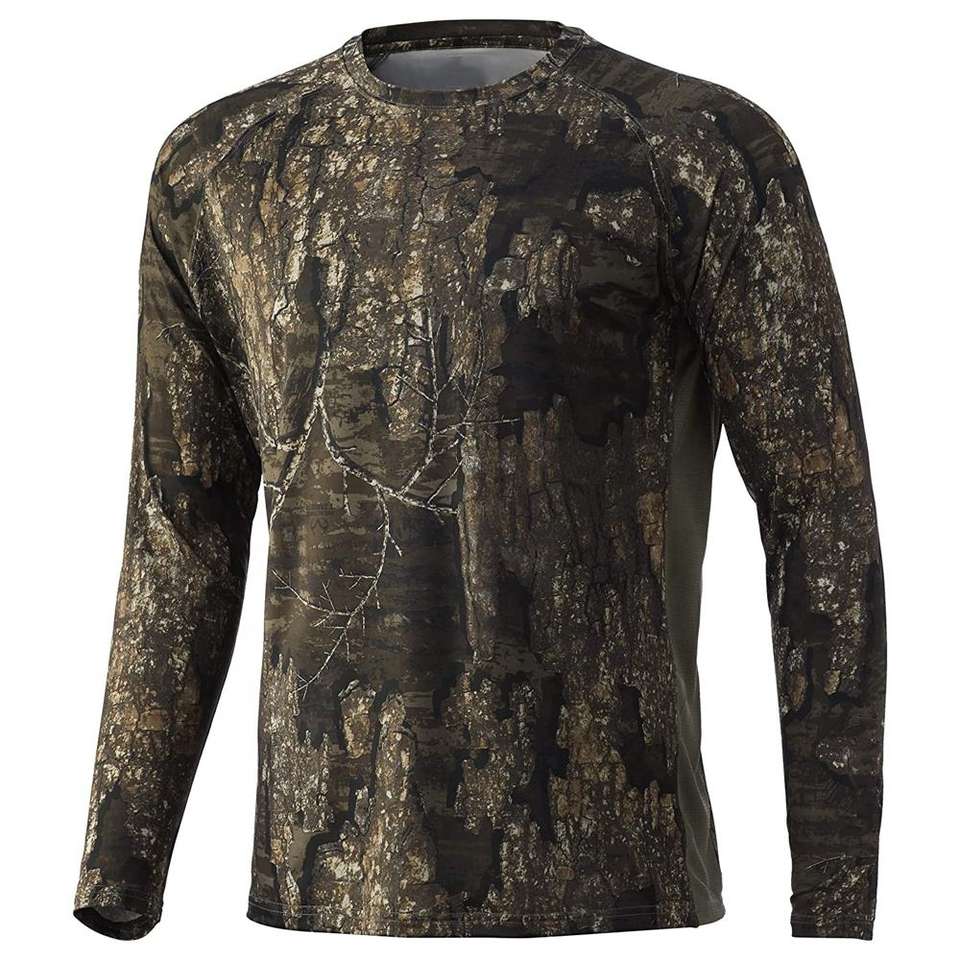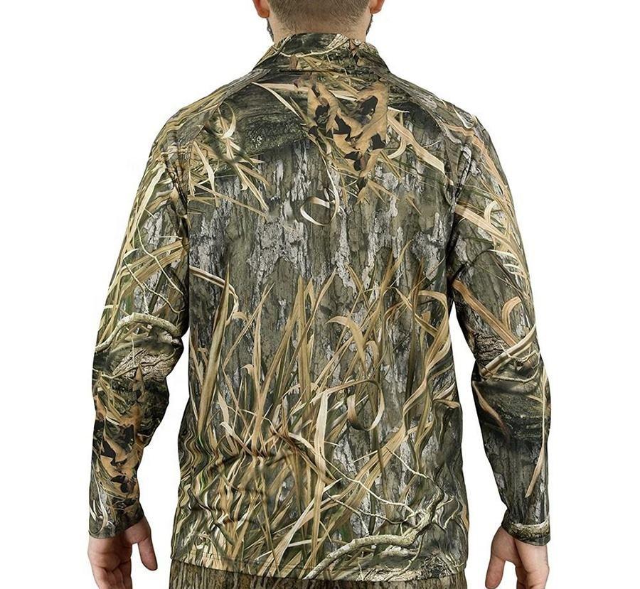 เสื้อยืดแขนยาวผู้ชายแบบซิปครึ่งตัว ลายพราง สำหรับล่าสัตว์ เดินป่า ทำกิจกรรมกลางแจ้ง ทรงบ็อกซี่ ระบายอากาศได้ดี