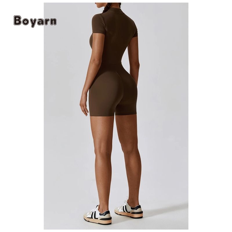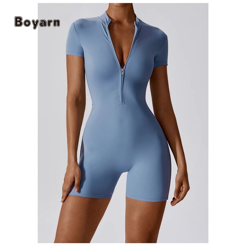 ชื่อผลิตภัณฑ์:จั๊มสูทกีฬาสั้นผู้หญิงมีซิปครึ่งตัว