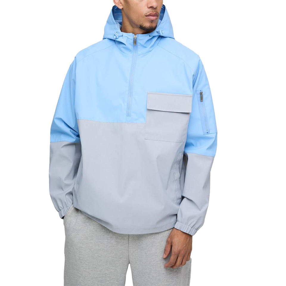 แจ็กเก็ตมีฮู้ดกระเป๋าหน้าอกซิปครึ่งตัวเสื้อแจ็คเก็ตกันลมแฟชั่นหลากสีออกแบบได้ตามต้องการ
