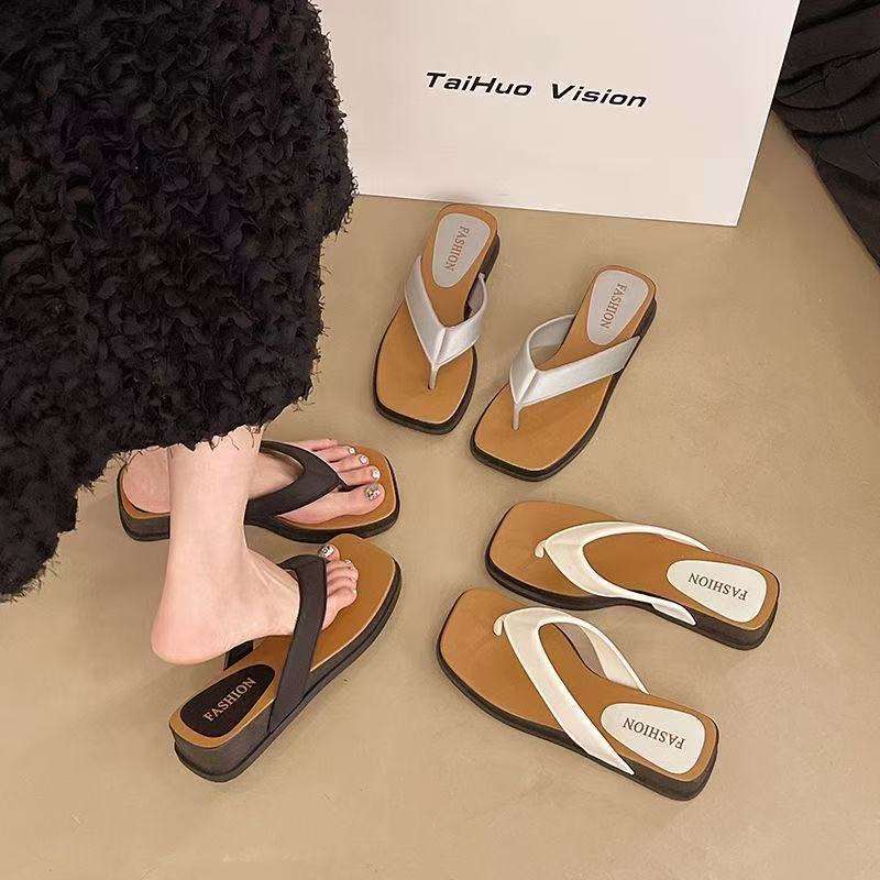 รองเท้าแบบสวมครึ่งเท้าสำหรับผู้หญิง กันน้ำ ลายดอกไม้สไตล์เรโทร ทันสมัย พื้นหนา ระบายอากาศได้ดี กันลื่น ส้นเตี้ย ประดับลูกปัด